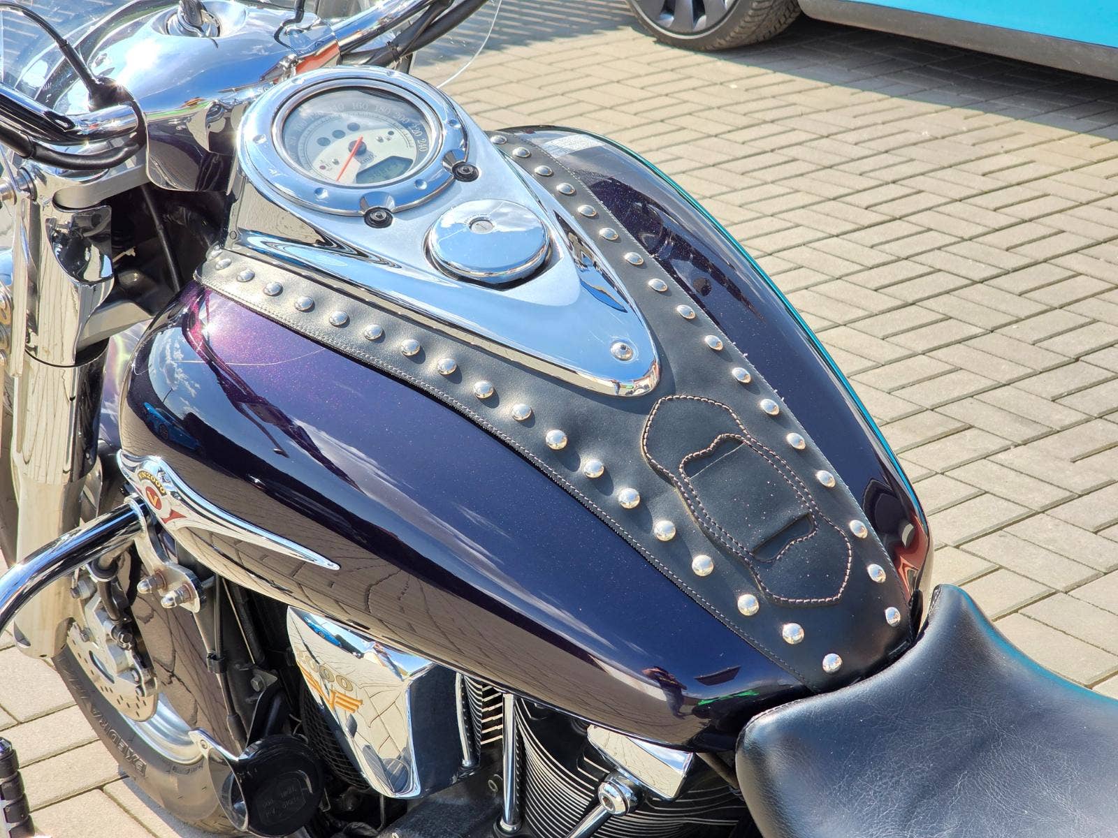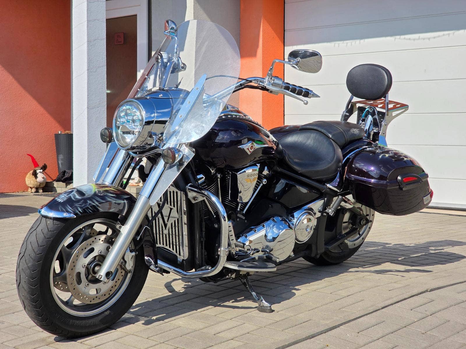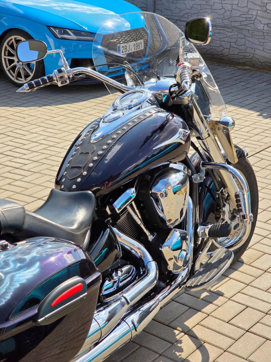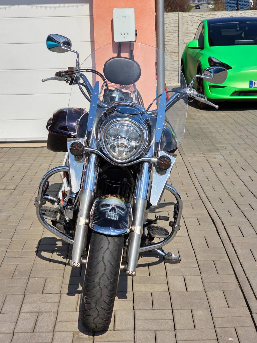 Prodám Kawasaki VN 2000 v krásné tmavě fialové metalíze, rok výroby 2006, najeto 98.800 km, výkon 76 kW, objem motoru 2053cm3, STK platná do 3/2030. Motorka byla dovezena po prvním majiteli z Itálie v roce 2014 s nájezdem 17.000 km a od té doby ježděna v ČR. Celkově ve velice hezkém zachovalém originálním stavu, nehavarovaná (výpis Cebia), původní lak (pouze zakázkový Airbrush na krytech kufrů a předním blatníku). Pravidelný servis, každoročně nebo po 12.000 km výměna oleje v motoru s filtrem. Navíc dokoupené originální kufry v barvě motorky, plexi, opěrka s nosičem, padací rám s předkopy, ochrana chladiče, deflektory na vidlicích, kožená ochrana nádrže, kouřové blinkry apod.