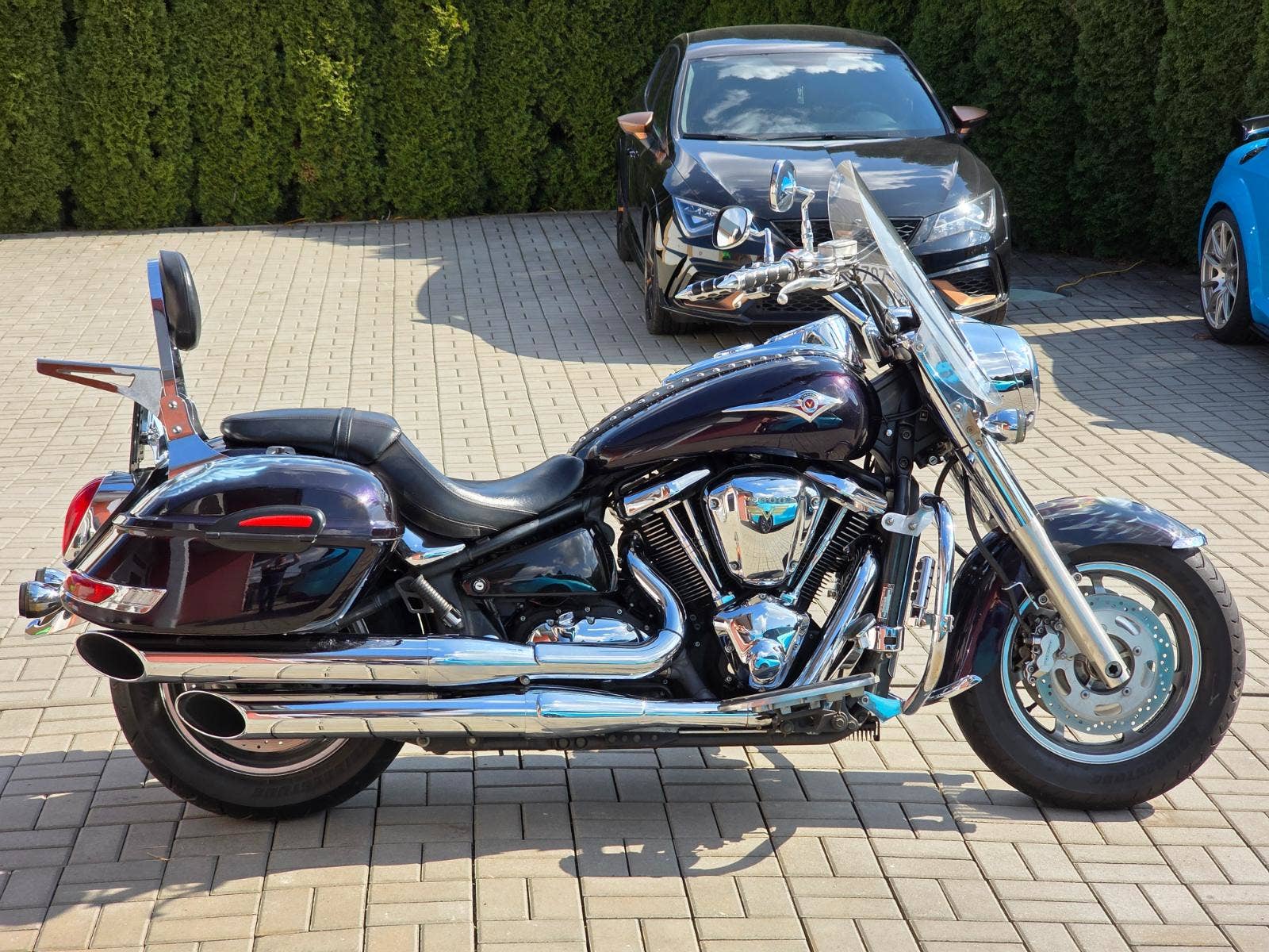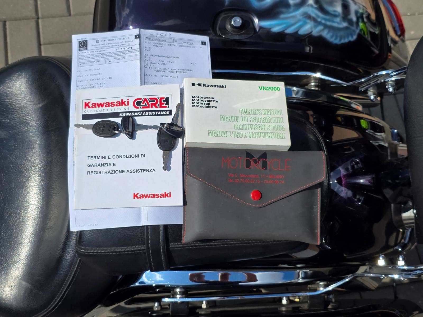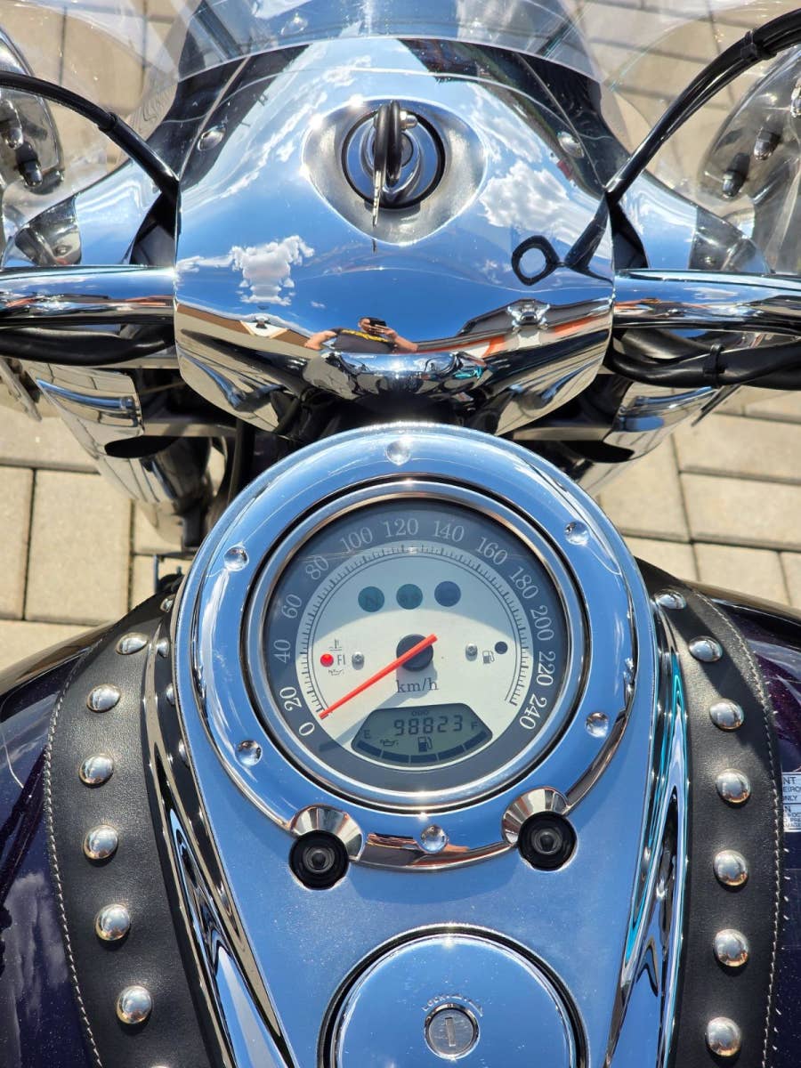 Prodám Kawasaki VN 2000 v krásné tmavě fialové metalíze, rok výroby 2006, najeto 98.800 km, výkon 76 kW, objem motoru 2053cm3, STK platná do 3/2030. Motorka byla dovezena po prvním majiteli z Itálie v roce 2014 s nájezdem 17.000 km a od té doby ježděna v ČR. Celkově ve velice hezkém zachovalém originálním stavu, nehavarovaná (výpis Cebia), původní lak (pouze zakázkový Airbrush na krytech kufrů a předním blatníku). Pravidelný servis, každoročně nebo po 12.000 km výměna oleje v motoru s filtrem. Navíc dokoupené originální kufry v barvě motorky, plexi, opěrka s nosičem, padací rám s předkopy, ochrana chladiče, deflektory na vidlicích, kožená ochrana nádrže, kouřové blinkry apod.