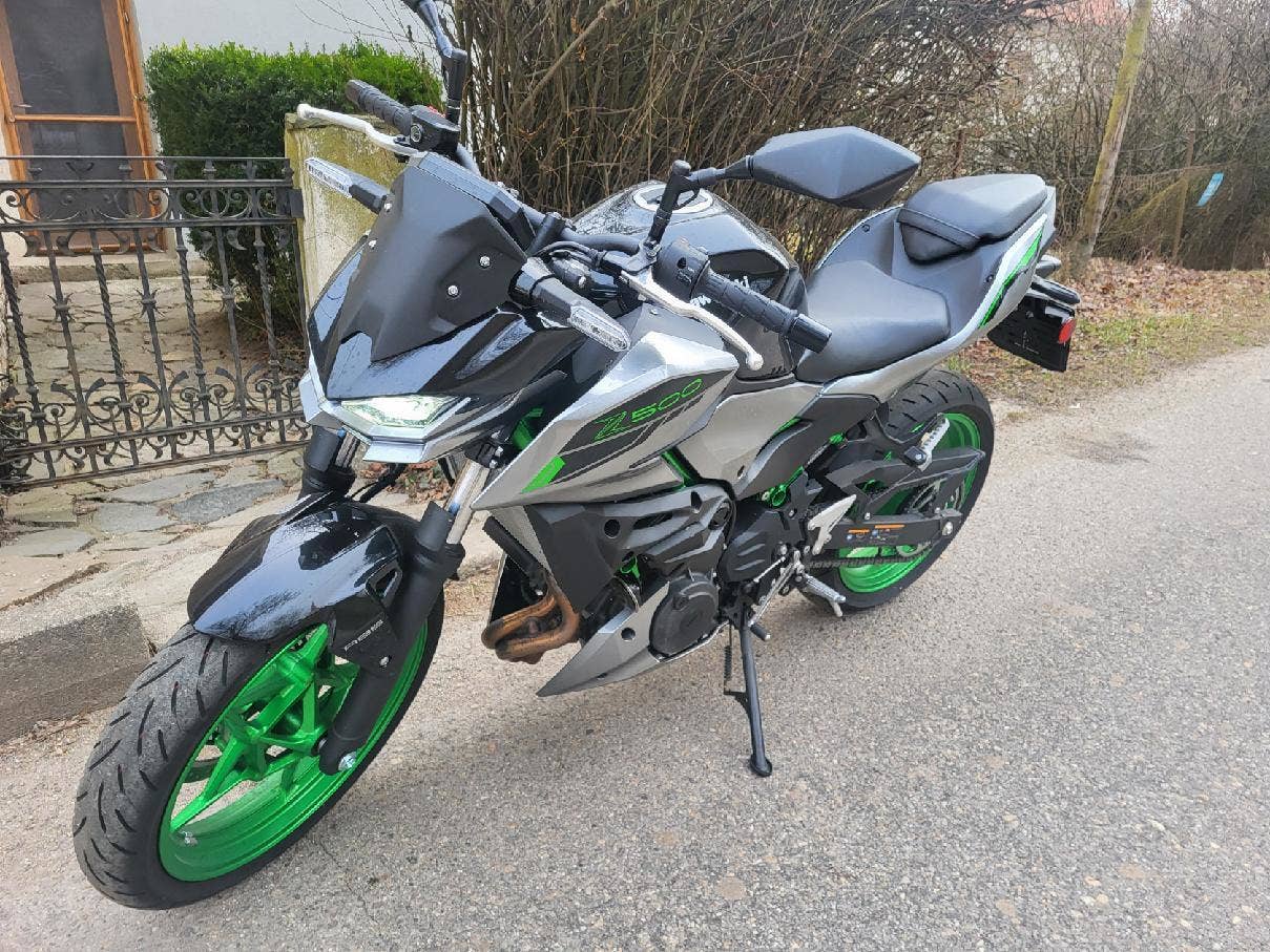 Na prodej zánovní motocykl Kawasaki Z500SE, r.v. 4/2025, ještě více než 3 roky v tovární záruce, zánovní motorka, dvouválec, výkon 33,4 kW, ideální na naučení, koupená nová v Kawasaki Modřice, PC155tis, nyní na prodej za 129900, kč.