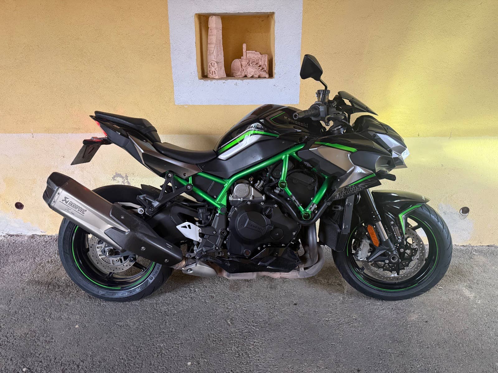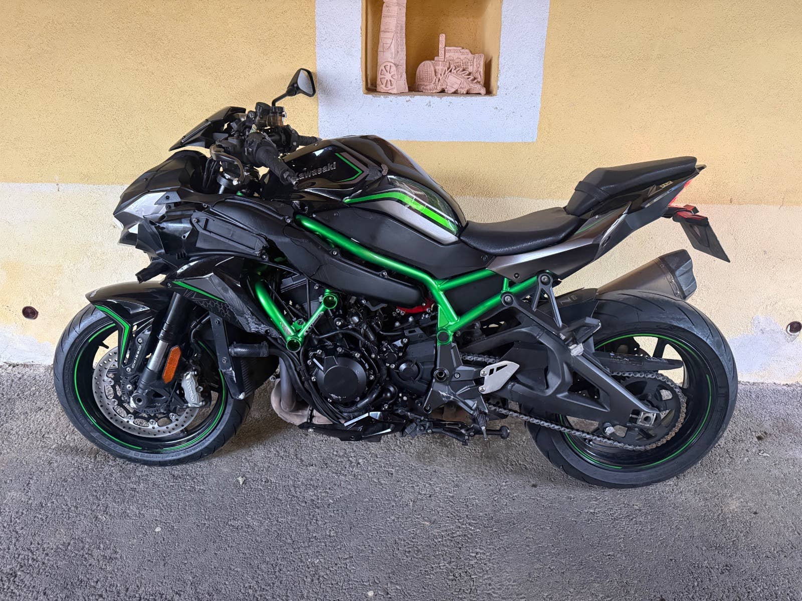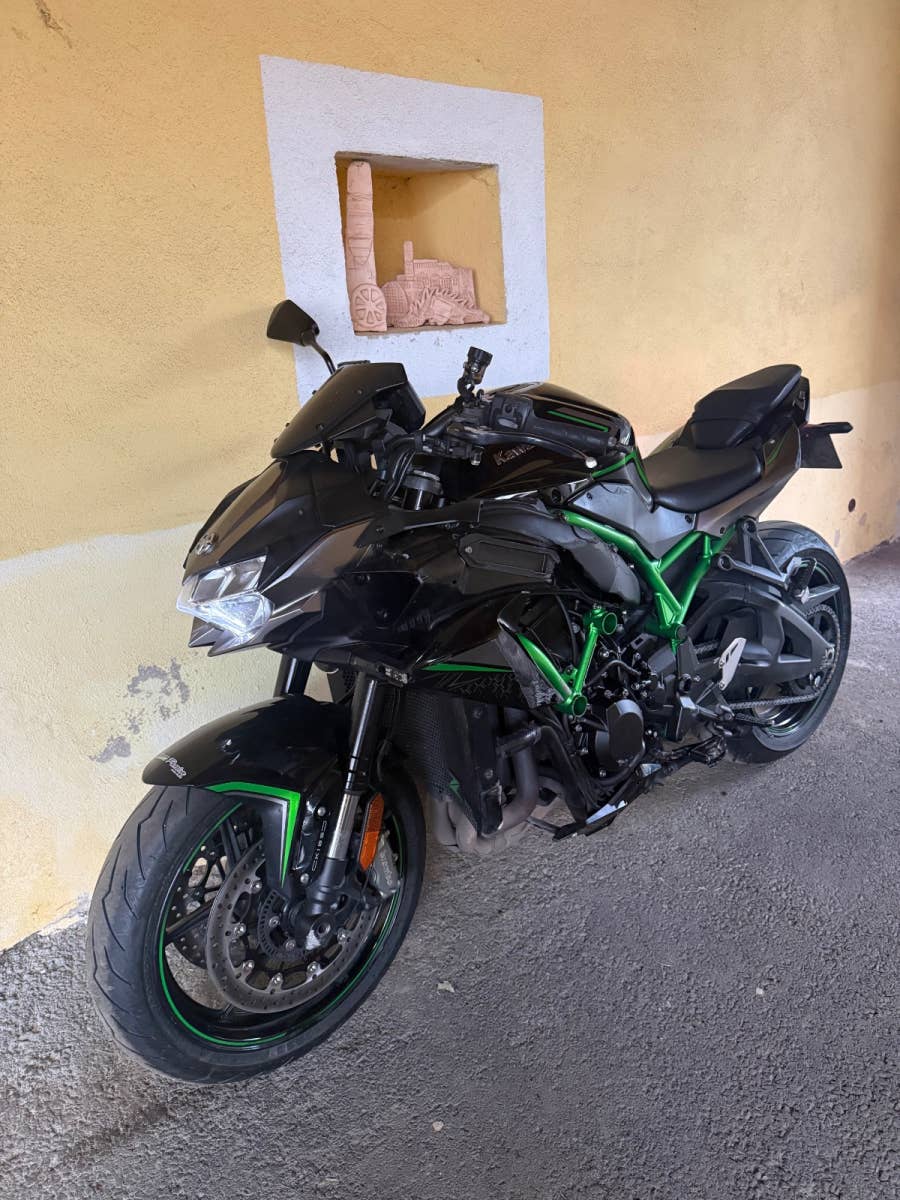 Havarovaná Kawasaki Z H2 2020, po 1. Majiteli, zachovalá motorka, podvozek vypadá o. k, chladič o. k., motor běží.. pojízdná!! poškození viz foto,..