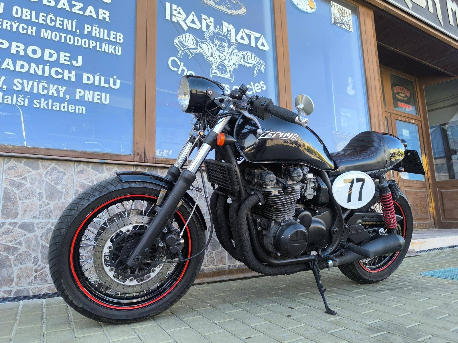 Prodám Kawasaki Zephyr 750 v úpravě Cafe Racer r.v. 1993 (úprava realizovaná v roce 20-21) a výkon 53 kW (najeto 60000 km). Zephýr je úpraveny individuálně do classic Cafe Raceru.(ten kdo vý tak ocení). Zephýr je připravený na sezonu jen jezdit. Má platnou STK ještě na 3 roky. Nejlépe je si k nám udělat výlet a zephýra okouknout a projet. Více info na tel. Před návštěvou volat!!!