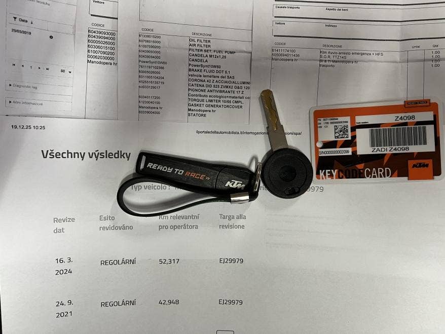 2klíče + karta, komplet výpis ze systému KTM, doložené km + faktury za servis, velmi pěkný stav bez oxidace, atraktivní barevná kombinace, reálně odpovídá nižšímu nájezdu, výbava: KTM MY RIDE, sedla Power Parts, vyhřívané ručky, padací rámy, výfuk Akrapovič, NYNÍ po servise v KTM za 45t.!, nové všechny náplně, filtry, svíčky, seřízené ventily, pevnější řetězová sada, nový stator + pravý ovladač, dobré pneu, více foto u nás na webu, provedena dovozová STK na 4 roky včetně evidenčky, registrace na CZ TP pouze 500,