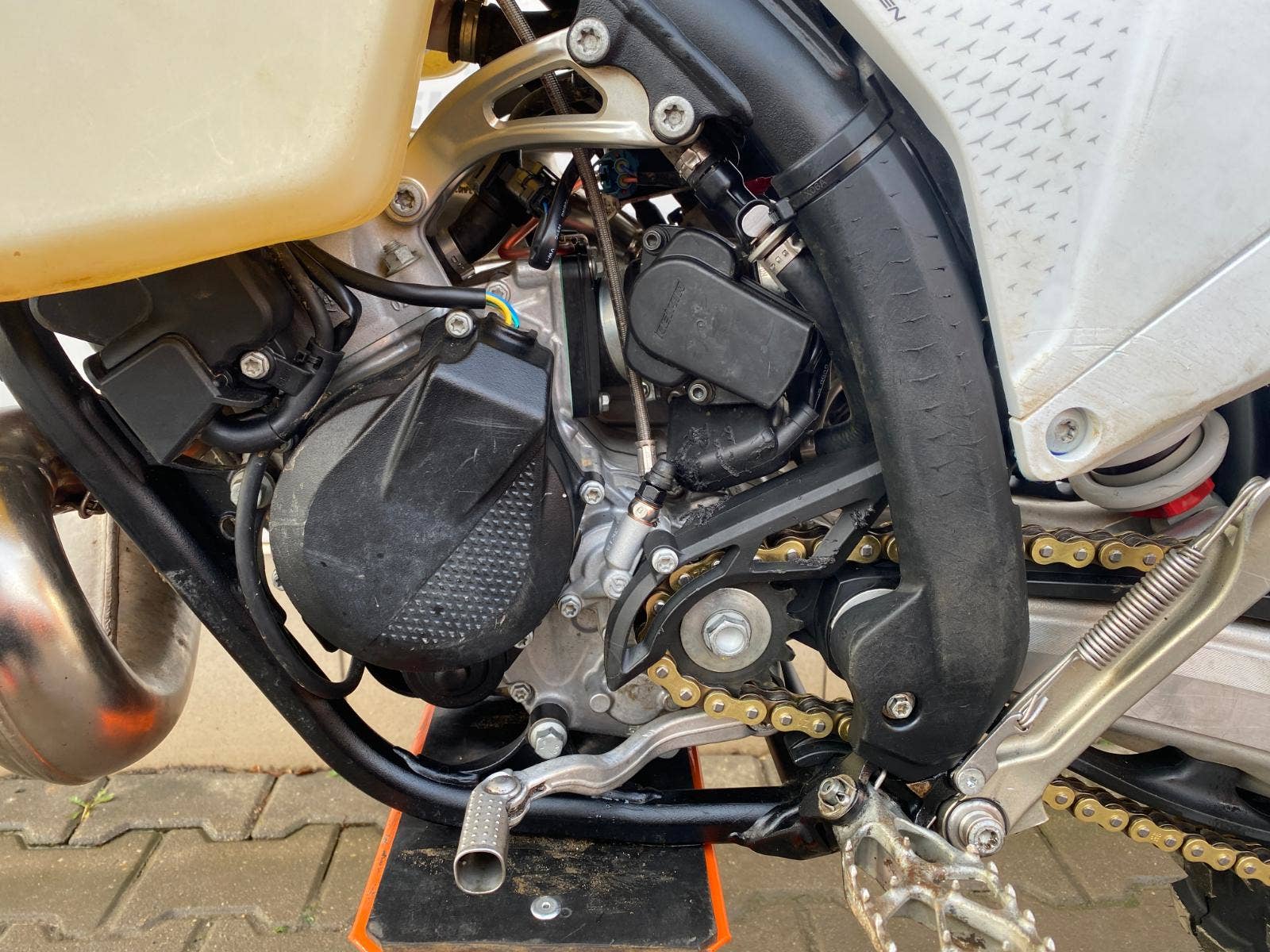 Nyní po servisu v KTM Vlašim - pístní sada, řetězová sada, hefty, provozní kapaliny, nová zadní pneu, celková předprodejní kontrola