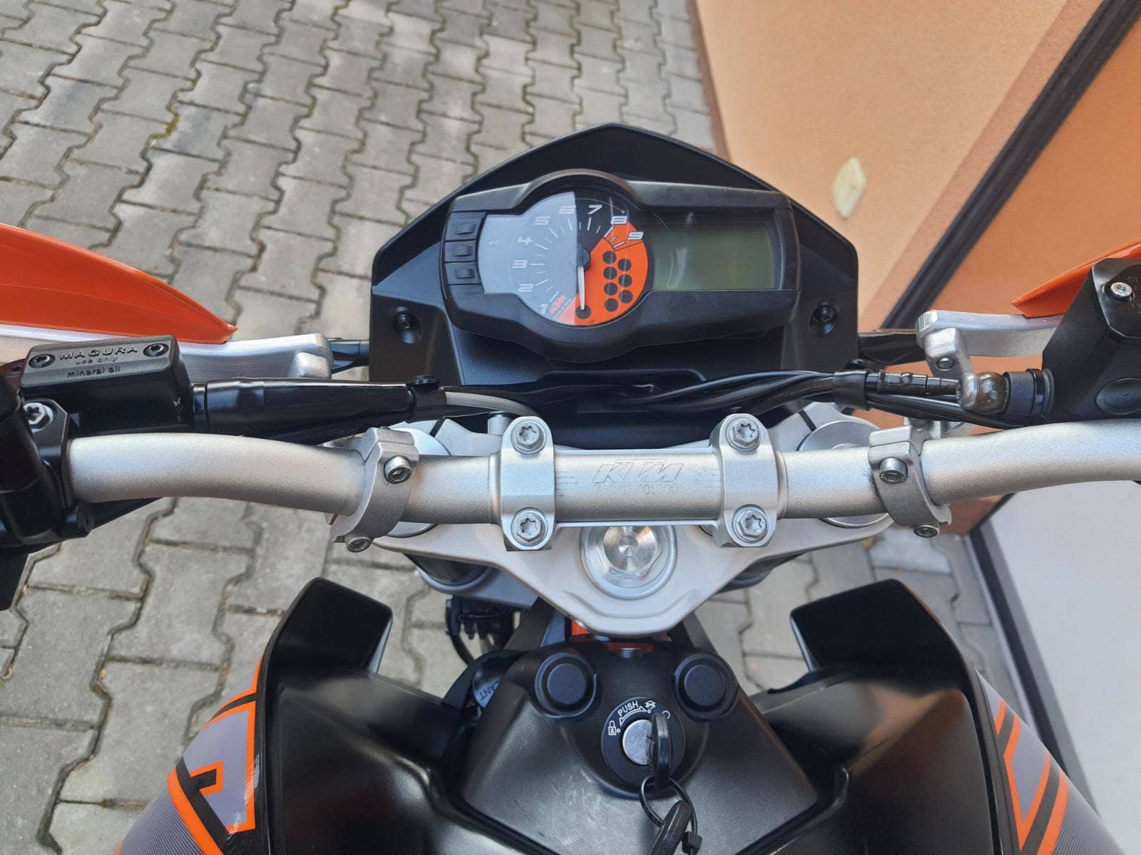 Motocykl v perfektním stavu a výbavě, nehavarovaný, dovezený z Německa. 2 x klíč, výpis servisní historie z KTM servisu. Výbava motocyklu: ABS, kryty rukojetí s hliníkovou výztuhou, držák SPZ s diodovým osvětlením, led diodové blikny, padací protektory předního a zadního kola, hliníkový kryt pod motorem KTM, padací rámy, rolny na zadní stojan, poelpy motocyklu KTM POWER PARTS. Zánovní sada pneu + řetězová sada. Možnost splátkového prodeje, již při složení 10% akontace vyřízení úvěru do 30 minut!
