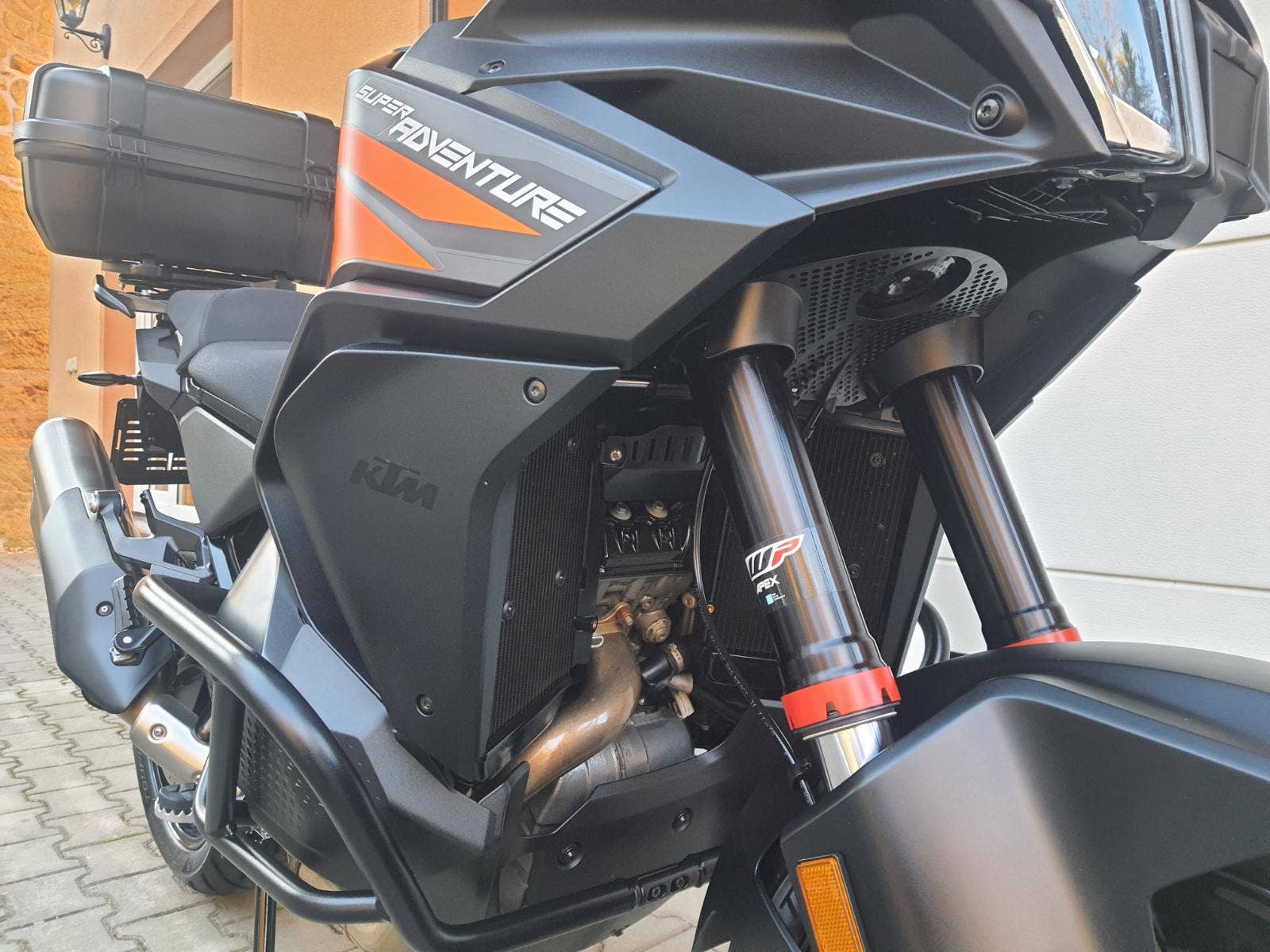 Motocykl v perfektním stavu, nehavarovaný, dovezený z Německa od 1. majtele. 2 x klíč, výpis servisní historie KTM- plná servisní historie motocyklu, vše dělané v autorizovaném servisu KTM. Zánovní sada pneu + řetězová sada OK. Výbava motocyklu: Padací rámy od SW MOTECH, nosič + kufr KAPPA GARDA, hlavní stojan, kryty rukojetí. Motocykl má aktivovaný balíček TECH PACK v hodnotě 31 000 kč: