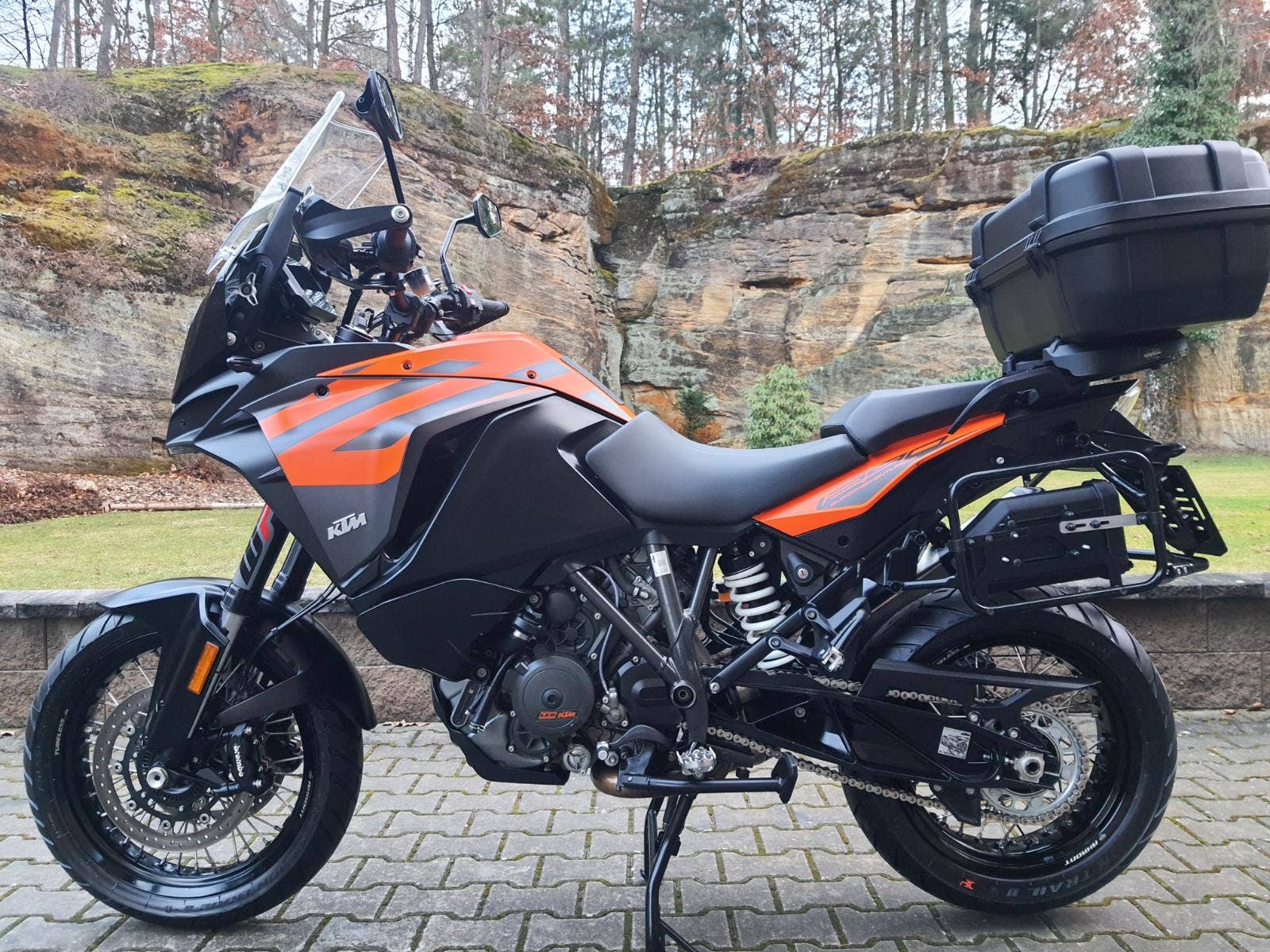 Motocykl v pěkném stavu dovezený z Německa od 1. majitele. 2 x klíč, nová sada pneu PIRELLI SCORPION, řetězová sada OK. Výpis servisní historie motocyklu z KTM, poslední servis proveden v 22 500 km, certifikát COC, protokol TUV - Německé STK - doložení KM. ABS, BC, TC, volitelné jízdní režimy, tempomat MTC + MSR, HHC, QUICKSHIFTER +, vyhřívané rukojeti, elektronicky stavitelný podvozek motocyklu. Výbava motocyklu: Hlavní stojan, podložka bočního stojanu, naklápěcí stupačky PIVOTPEGS, nosiče bočních kufrů, vrchní nosič + kufr KAPPA GARDA 53L, uzamykatelná schránka od GIVI, kryty rukojetí. Možnost splátkového prodeje, již při složení 10% akontace vyřízení úvěru do 30 minut!