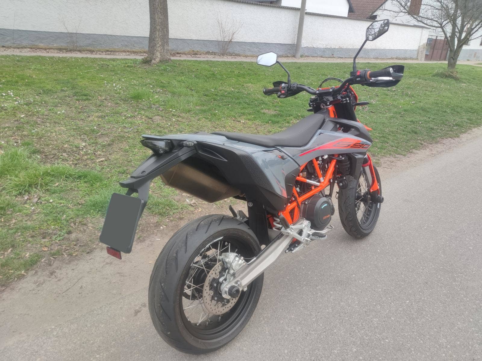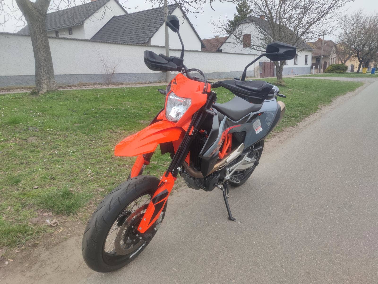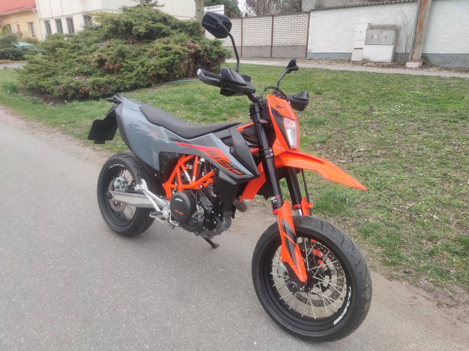 Máme na prodej KTM 690 SMC-R v oranžové barvě, stav nového motocyklu, první registrace 3/2023, výkon 55 kW, stav tachometru pouze 7.409 km, 1 majitel, původ ČR. Nyní bez žádných nutných investic, po výměně oleje, 2x klíč + codecard, STK do 3/2029.
