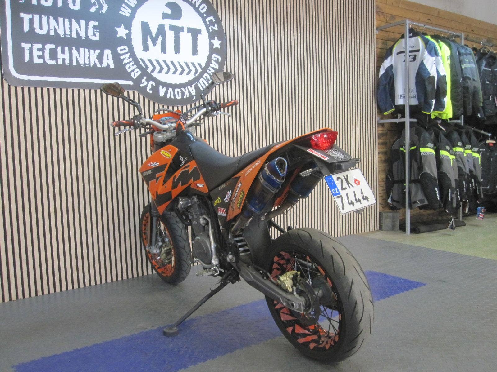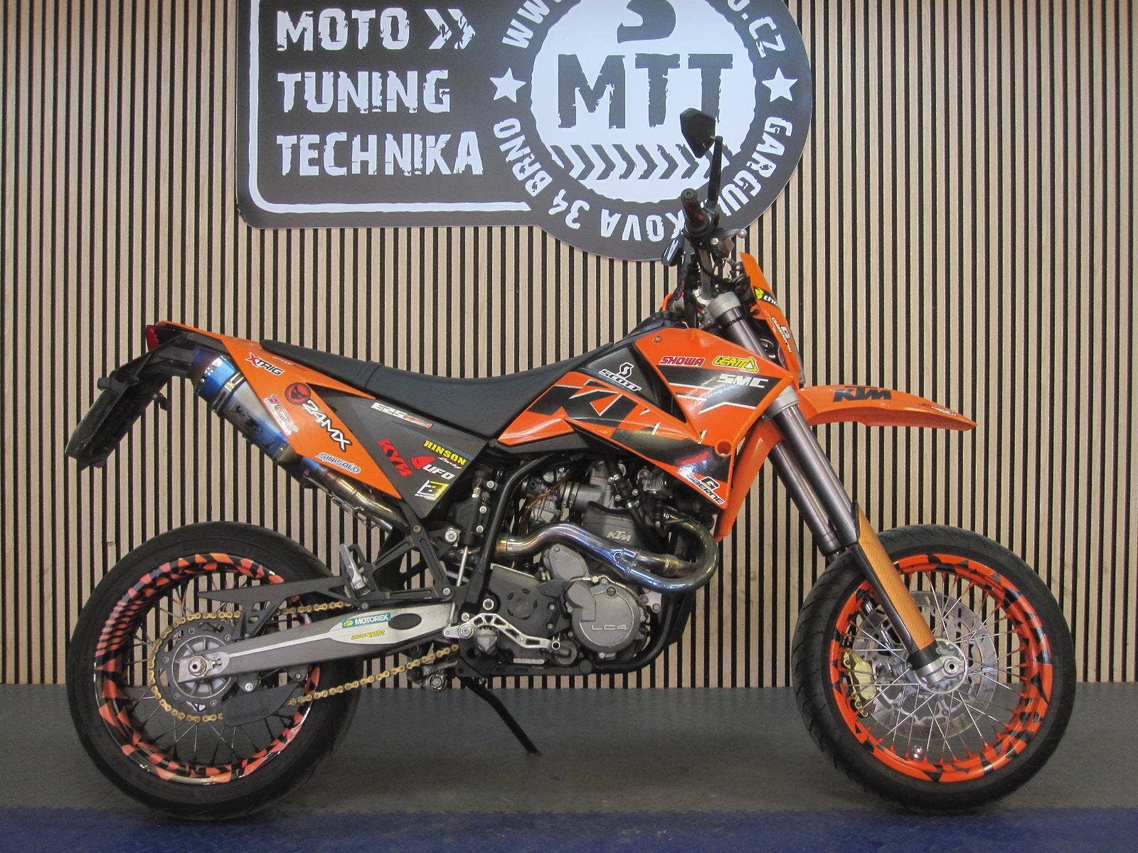 KTM 625 SMC je legendární supermoto z rodiny LC4, které se vyrábělo přibližně v letech 2004 až 2007. Jde o stroj pro ty, kteří hledají kompromis mezi "vyměklou" verzí 640 a čistě závodním speciálem 660. Tento konkrétní stroj byl zakoupen v roce 2006. V TP zapsán výkon 21 kW, TK do roku 2029. Momentálnístav tachometru 22.080 km. motocykl je vybaven agresivním jednoválcem, který "trhá ruce" a vibruje celým tělem. Je proslulý svou okamžitou reakcí na plyn díky karburátoru Keihin FCR 41. Motocykl je ideální na technické zatáčky a utažené okresky. Výbava: Kvalitní podvozek WP. Má elektrický startér i klasickou "nakopávačku". K motocyklu manuály na nastavení tlumičů, druhá maska, origo. výfuky, boty Forma vel. 45 a pod.