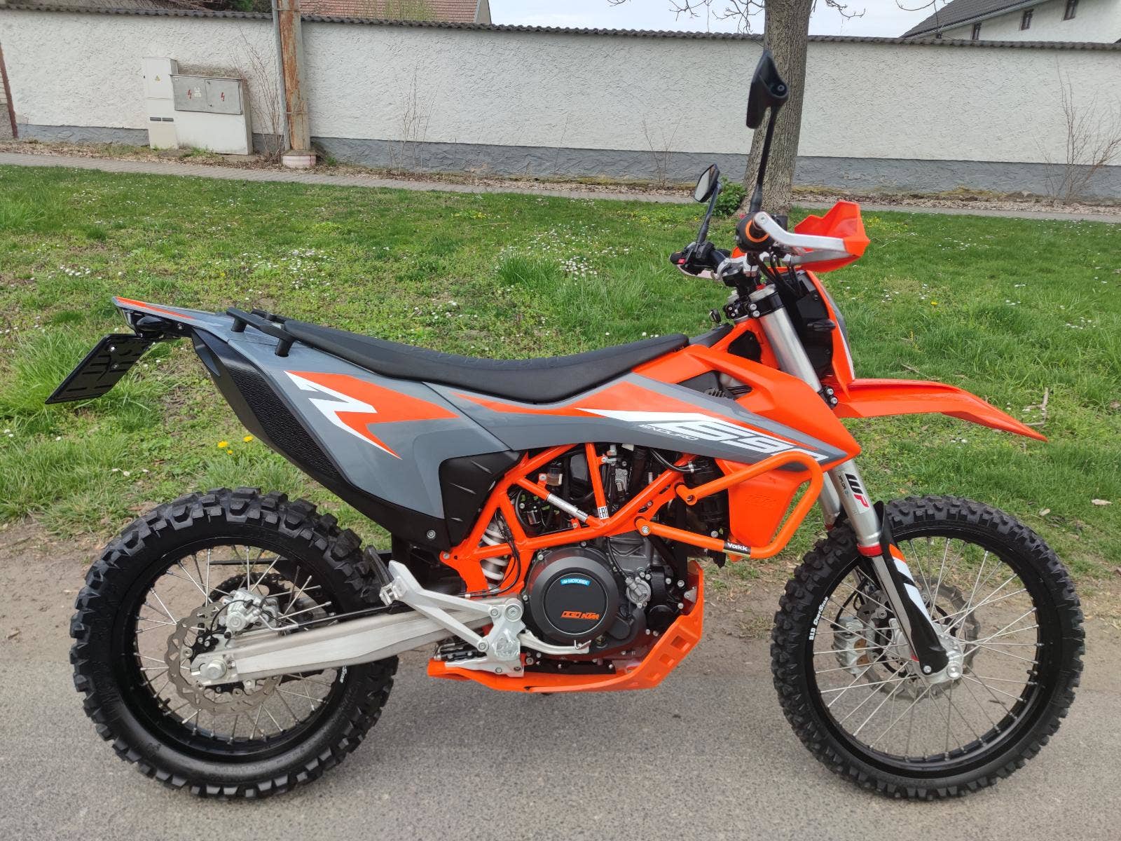 Máme na prodej velmi zachovalou KTM 690 Enduro R v oranžové barvě, první registrace 4/2022, výkon 55 kW, stav tachometru pouze 9.993 km, původ ČR. Motocykl má padací rám, krátký držák RZ + originální. Nyní bez žádných investic, nyní po výměně oleje a výměně pneumatiky, 2x klíč + code card, STK do 4/2028,