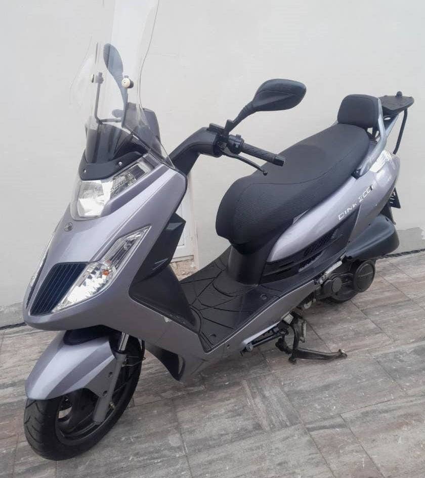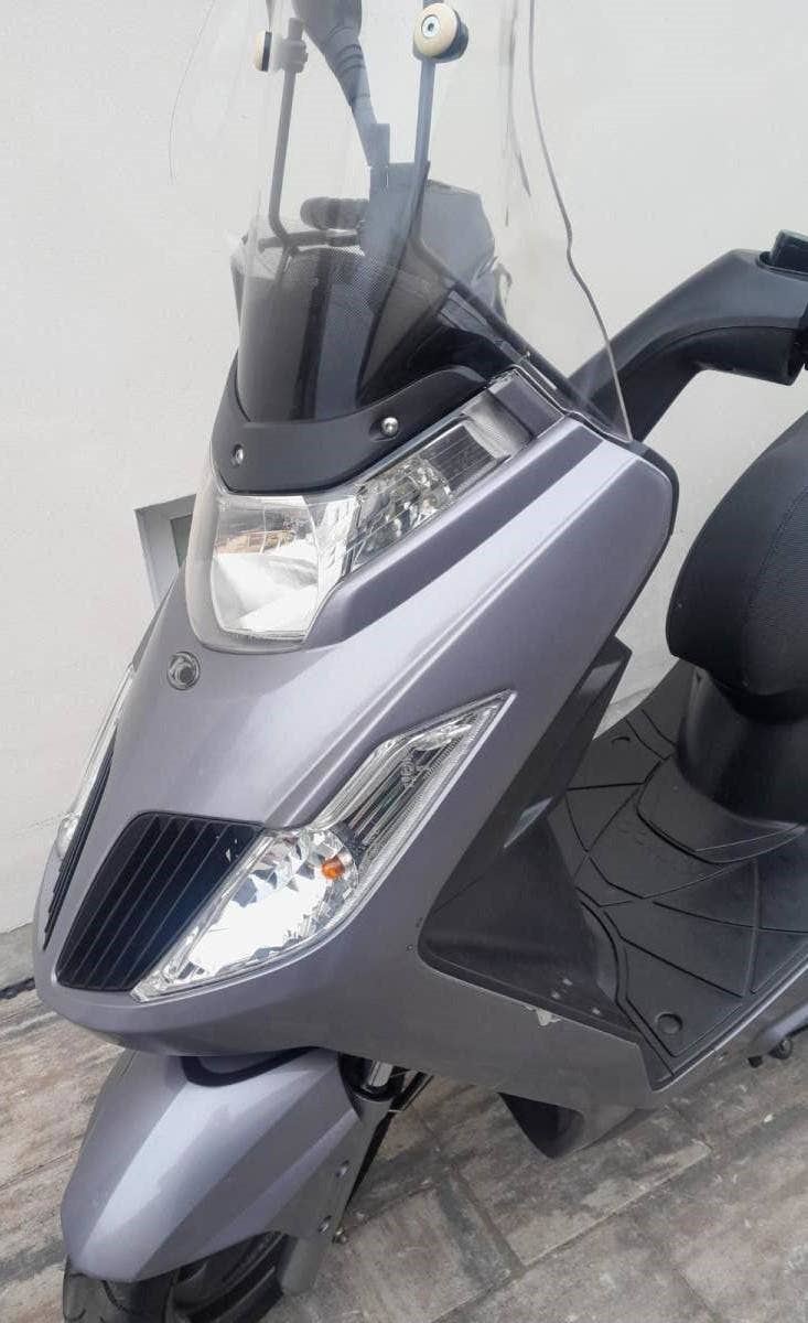 Skútr nebyl havarovaný, nejezdil u moře, velmi dobrý stav. Vodou chlazený 4-takt se vstřikováním paliva - velmi nízká spotřeba 2.5l/100 km, max. rychlost kolem 120km/h. Doplňkový kufr + vyšší plexi.