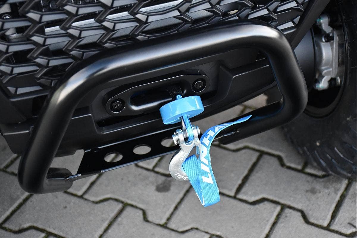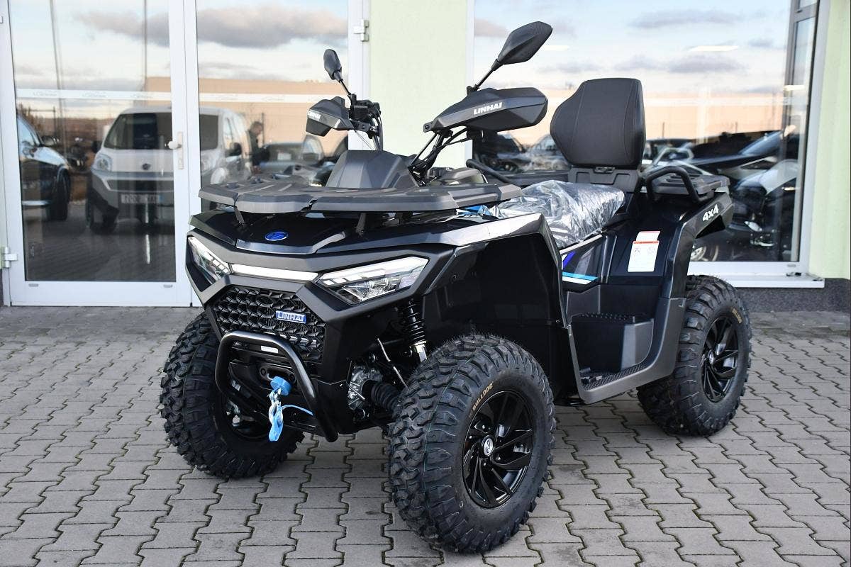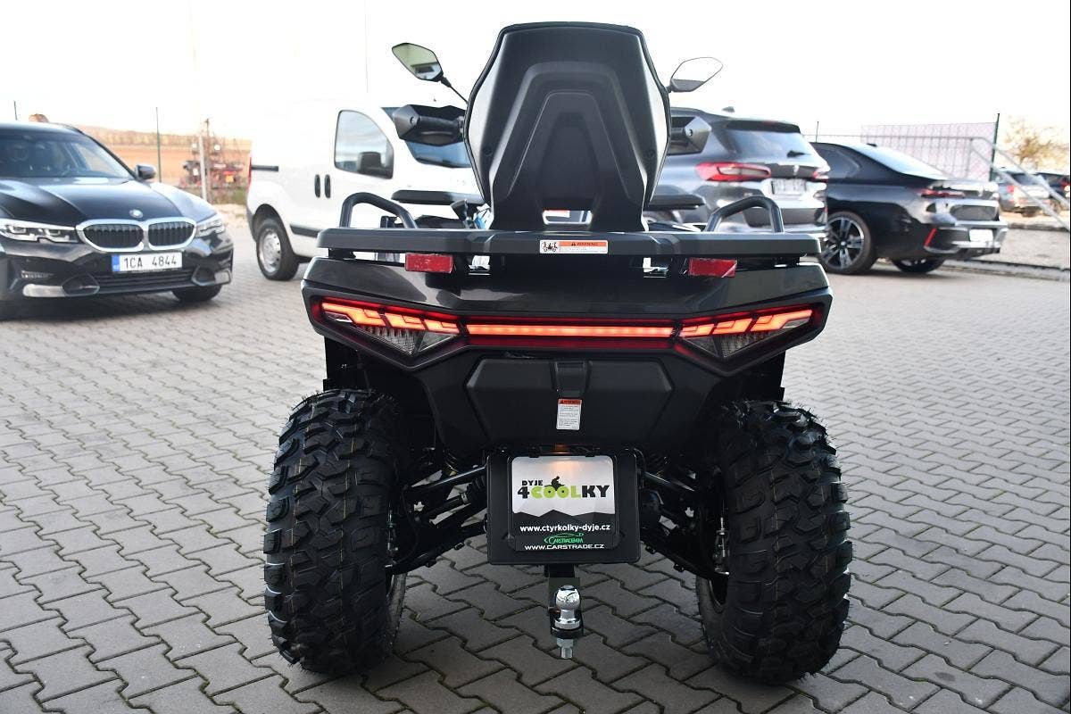 Užitková / pracovně-rekreační čtyřkolka, T3b, dlouhý rozvor, vysokovýkonné Full-LED světlomety, LED světla pro denní svícení, přední LED blinkry, kapalinou chlazený jednoválec 493 cm3, posilovač řízení EPS, EFI, automatická převodovka, L/H/N/R, pohon 2x4 / 4x4 s uzávěrkou diferenciálu, nezávislá dvojitá A-ramena, 4x kotoučová brzda, tažné zařízení, kompozitní nosiče vpředu a vzadu, el. naviják 3000lbs s nylonovým lanem a dálkovým ovládáním, 12" ALU kola, 25" pneumatiky Bulldog, prošívaná sedačka spolujezdce a opěrka zad