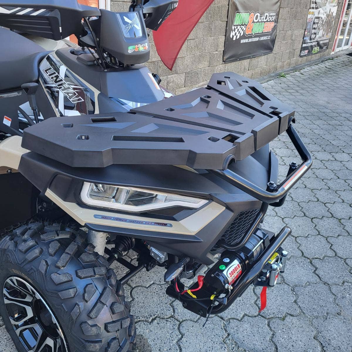 Přes svoji vynikající cenu nabízí Linhai 370 Promax bohatou výbavu již v základu. Ta zahrnuje kromě LED osvětlení například i atraktivní ALU disky se značkovými pneumatikami, elektrický naviják 3000lbs a dálkovým ovládáním, tažné zařízení, nachybí masivní nárazníky vpředu i vzadu, moderní kompozitové nosiče, kryty rukou nebo praktická akustická signalizace blikačů.