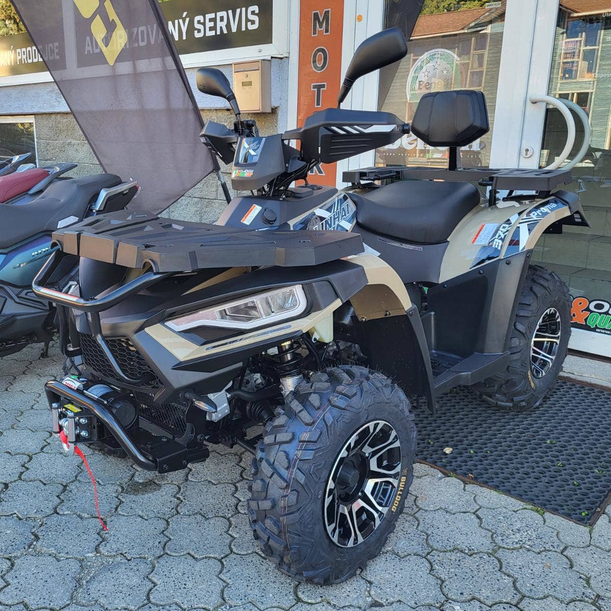 LINHAI 370 Promax je základním modelem s pohonem všech kol. Cenově atraktivní užitková čtyřkolka má větší a silnější motor, skvělý poměr cena/výkon, a pohon 4WD, který vás dokáže dostat z bláta a zároveň vám poskytne maximální požitek z jízdy. Díky novým LED světlometům je nový model agresivnější. Nový mechanismus řazení je nyní přesnější a plynulejší. Cenově atraktivní užitková čtyřkolka nabízí pohodlný podvozek, tichý spolehlivý motor a příjemné řízení. Vaše peněženka zase ocení, že jde o cenově nejdostupnější pracovně-rekreační čtyřkolku v této třídě.