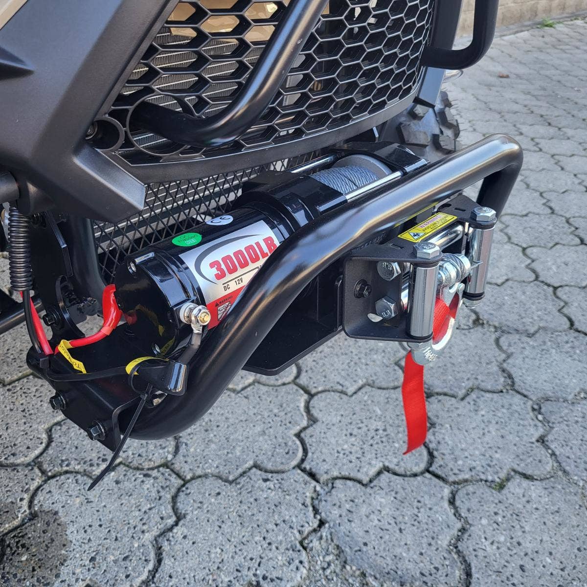 Elektricky přiřaditelný pohon 4x4, masivní přední ochranný rám, robustní přední a zadní nosič, ocelová kola se značkovými pneumatikami, elektrický naviják 3000lbs s dálkovým ovládáním, tažné zařízení, kryty páček a rukou, LED světla pro denní svícení, dvojité projektorové světlomety, zadní/brzdová/směrová světla s technologií LED, zadní opěrka (platí pro T3b homologaci).