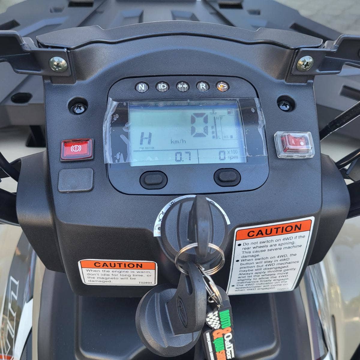 Přístrojová deska s modře podsvíceným multifunkčním LCD displejem je dobře čitelná a poskytuje všechny důležité informace: digitální rychloměr, digitální otáčkoměr, ukazatel počtu najetých km, ukazatel počtu motohodin, indikátor zařazeného pohonu 2WD/4WD, ukazatel teploty chladící kapaliny, nebo digitální palivoměr.