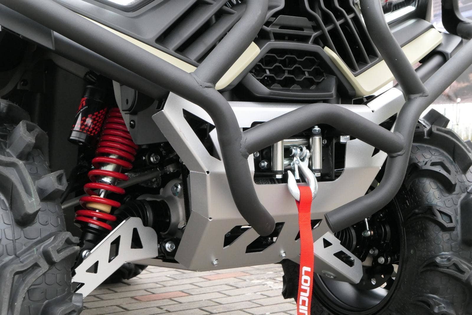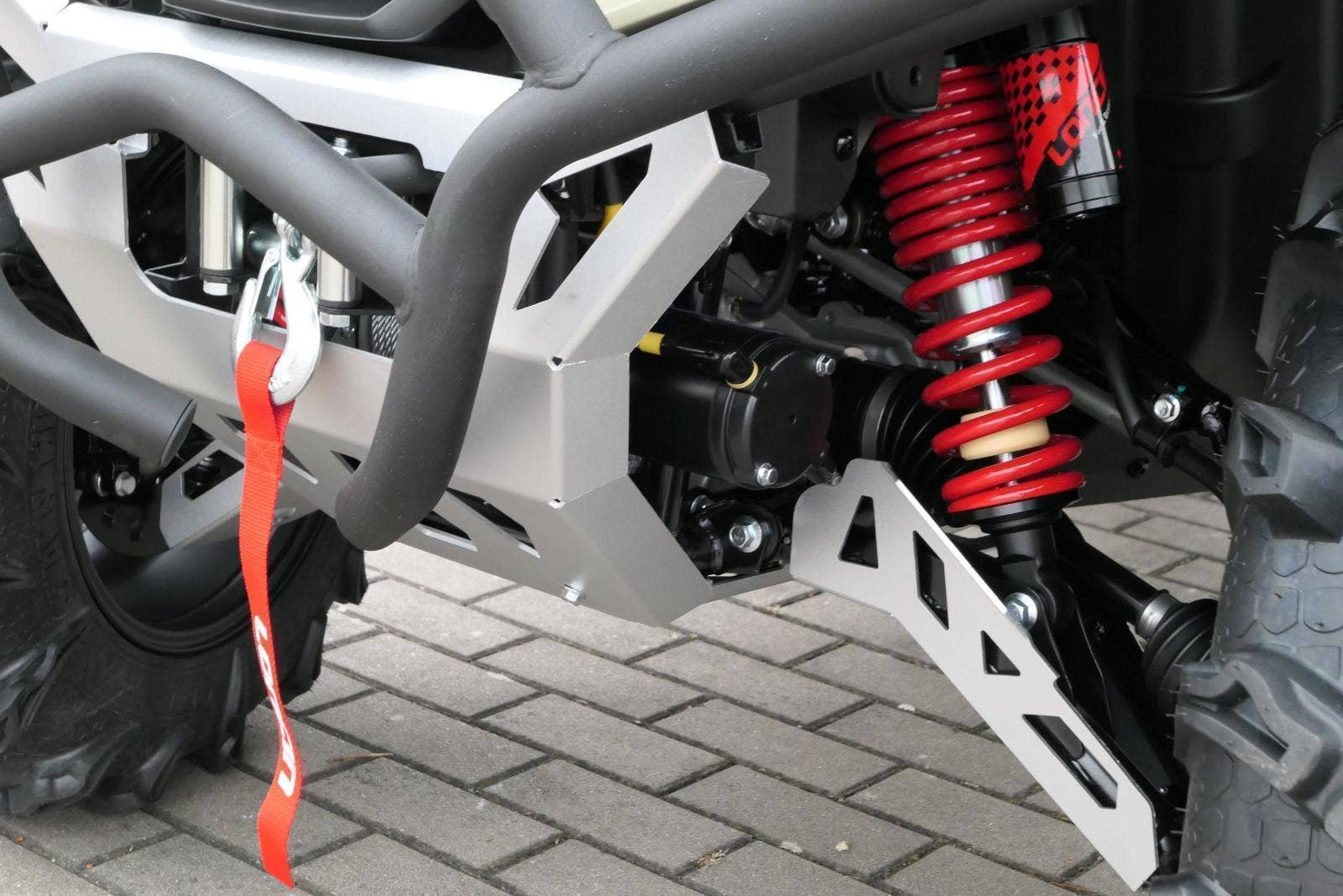 ✓ Origoš kryt podvozku. A né ledasjakej. Běžně dostaneš ochranu z tenkýho plastu, nebo si musíš zhruba za 10 litrů dokoupit něco betelnějšího. U mě můžeš bejt v klidu. Už v základu mám kryt z hliníkový slitiny. To je dokonalá ochrana podvozku i v tom nejdivočejším terénu.