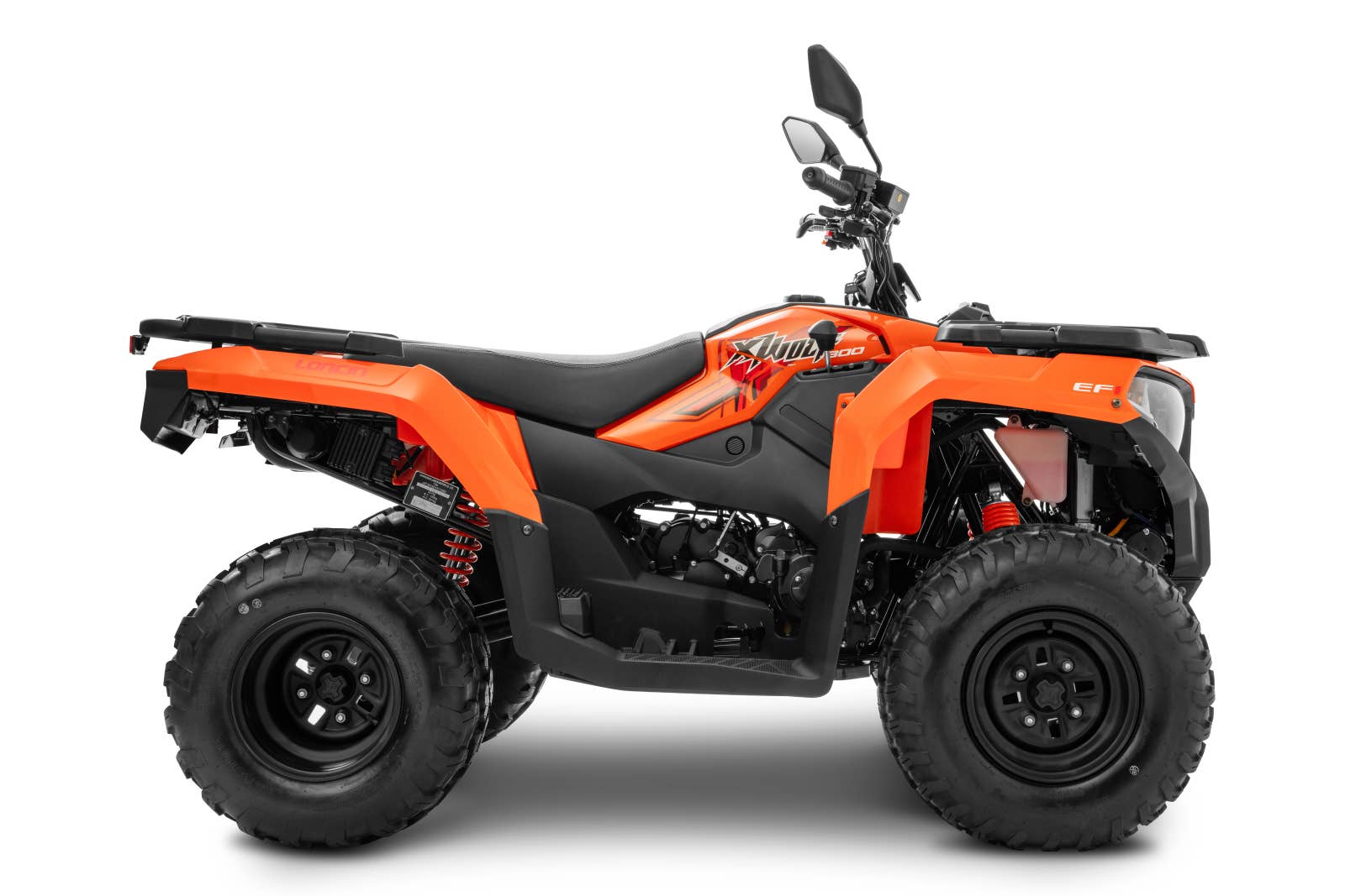 Takový čtyřkolkový spřežení ti nabídne pohodovej cval i pořádnej trysk. Na to vem jed, jako že se Vlk jmenuju! Překvapím tě silou i obratností. Vděčím za to 271ccm motoru se vstřikováním Bosh a kardanovýmu pohonu zadních kol. Na automatický převodovce s variátorem oceníš hlavně redukci do síly. Díky ní se nezaleknu žádnýho terénu a utáhnu i pořádně naloženej vozejk. V lese dokážu dřít jako kůň. Doslova. Pomocí elektrickýho navijáku o síle 2 500 liber ti z rokle vytáhnu i stoletý kmeny.
