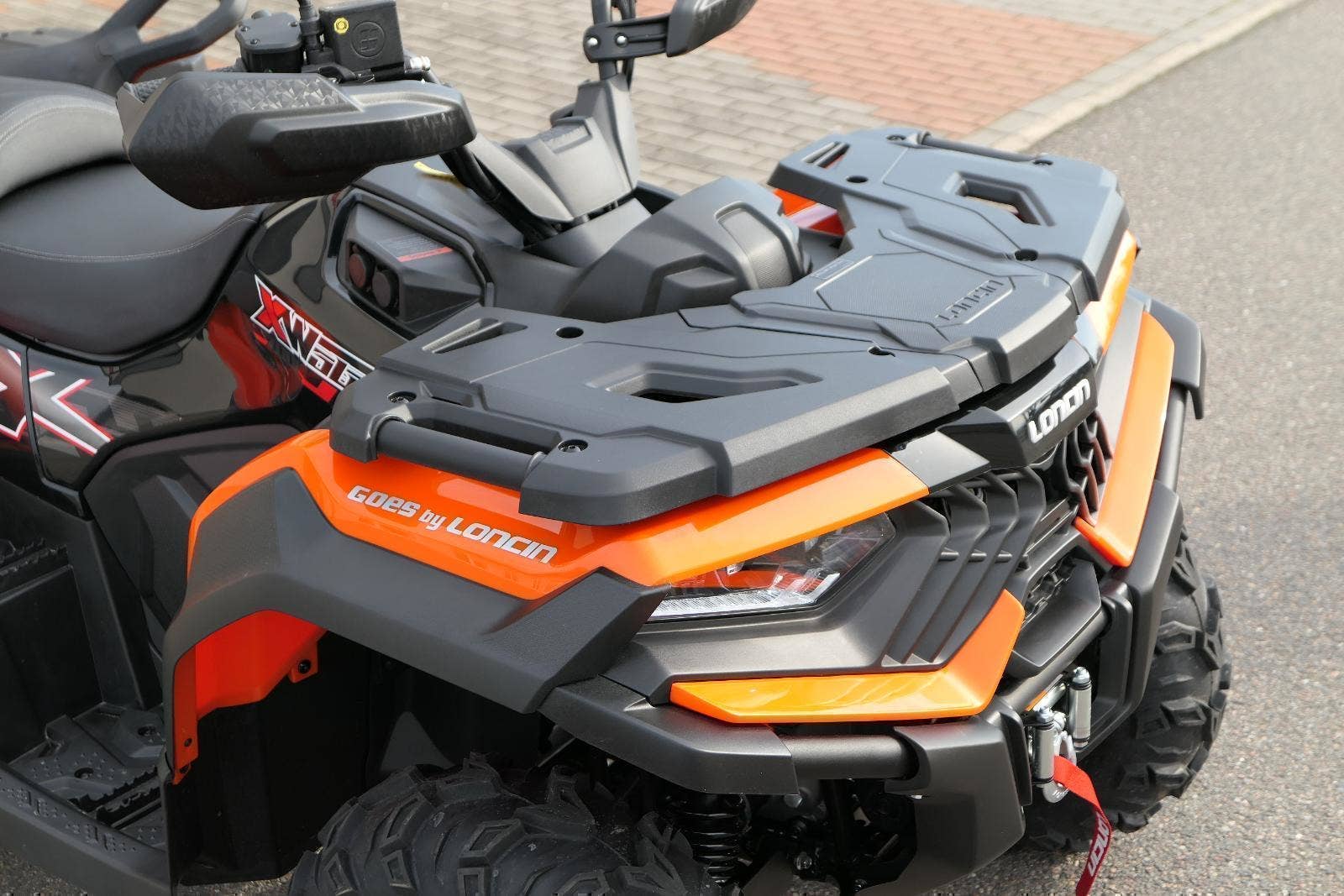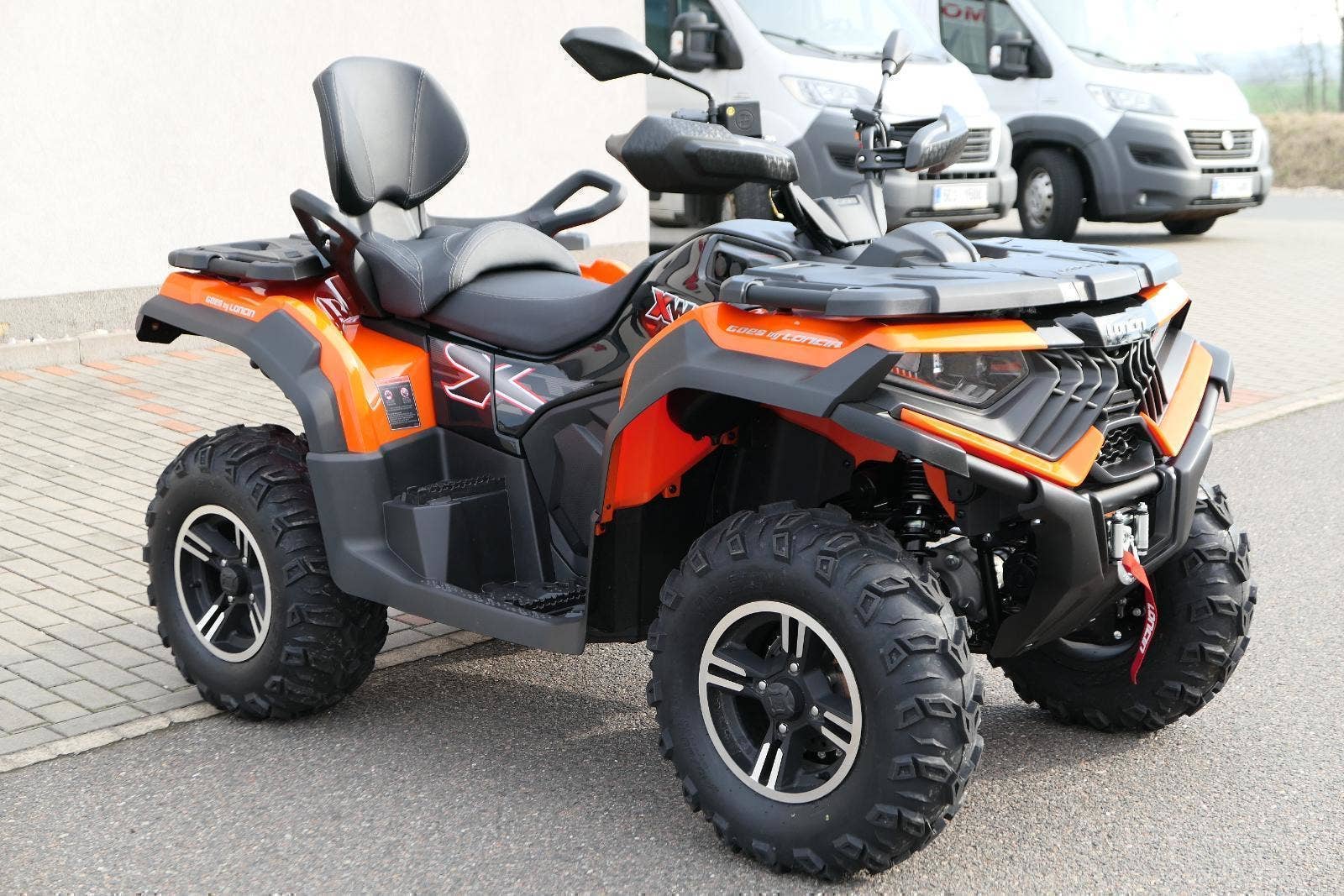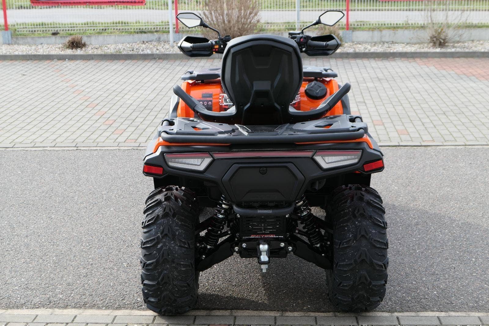 EPS (elektrický posilovač řízení), 12″ alu kola, 3x 12V zásuvka (zapalovač + 2x USB), zámek řízení integrovaný ve spínací skříňce, voděodolný kastlík v předním blatníku a v zadní části čtyřkolky, homologované tažné zařízení s el. zásuvkou na neskutečných 800 kg, silný elektrický naviják 3000 lbs, kryty rukou, ochranné lemy blatníků, přídavné sedadlo s opěradlem a madly pro spolujezdce (u prodloužené verze MAX), přepínání pohonu 2×4/4×4 + uzávěrka předního diferenciálu, přední ochranný rám s plastovým krytím, přední i zadní nosič s možností naložit na ně až 80 kg nákladu, full LED dynamické přední a zadní směrovky integrované do předních i zadních světel