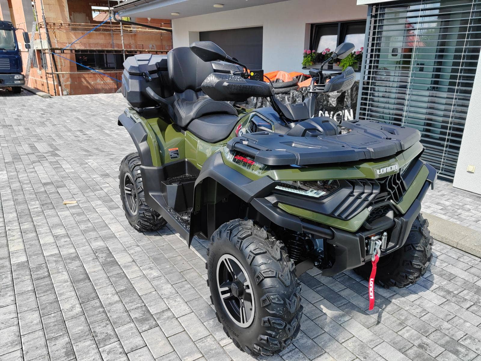 2026,2xklíče, najeto 0,3 km, serviska, tento stroj vznikl již v nové fabrice loncin, která také vyrábí BMW, MV agustu, VOGE a další. Motor 1x válec s rozběhovou spojkou ( neodchází řemeny ), velký výkon, naviják, tažné homologované zařízení, dlouhá verze., homologace pro, EPS, pohodlné sedačky, madla, opěrka, blastry