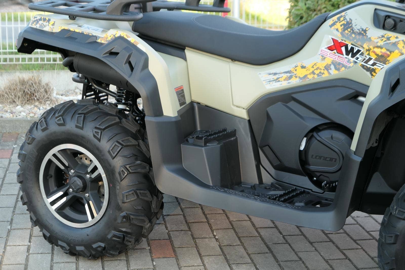 Probuď v sobě adrenalin se čtyřkolkou Loncin XWolf 550i! Makoun, kterej tě dostane kdykoliv a kamkoliv. S pohonem 4x4 a posilovačem řízení v základu se budeš cejtit jako vládce divočiny. A co víc? S homologovaným tažným schopným táhnout skoro tunu na kouli můžeš tahat cokoliv. Když nakombinuješ výkon, prémiový zpracování, spolehlivost značky Loncin a výbavu, nemáš co řešit. Jsem tvoje vstupenka do offroadovýho dobrodružství.