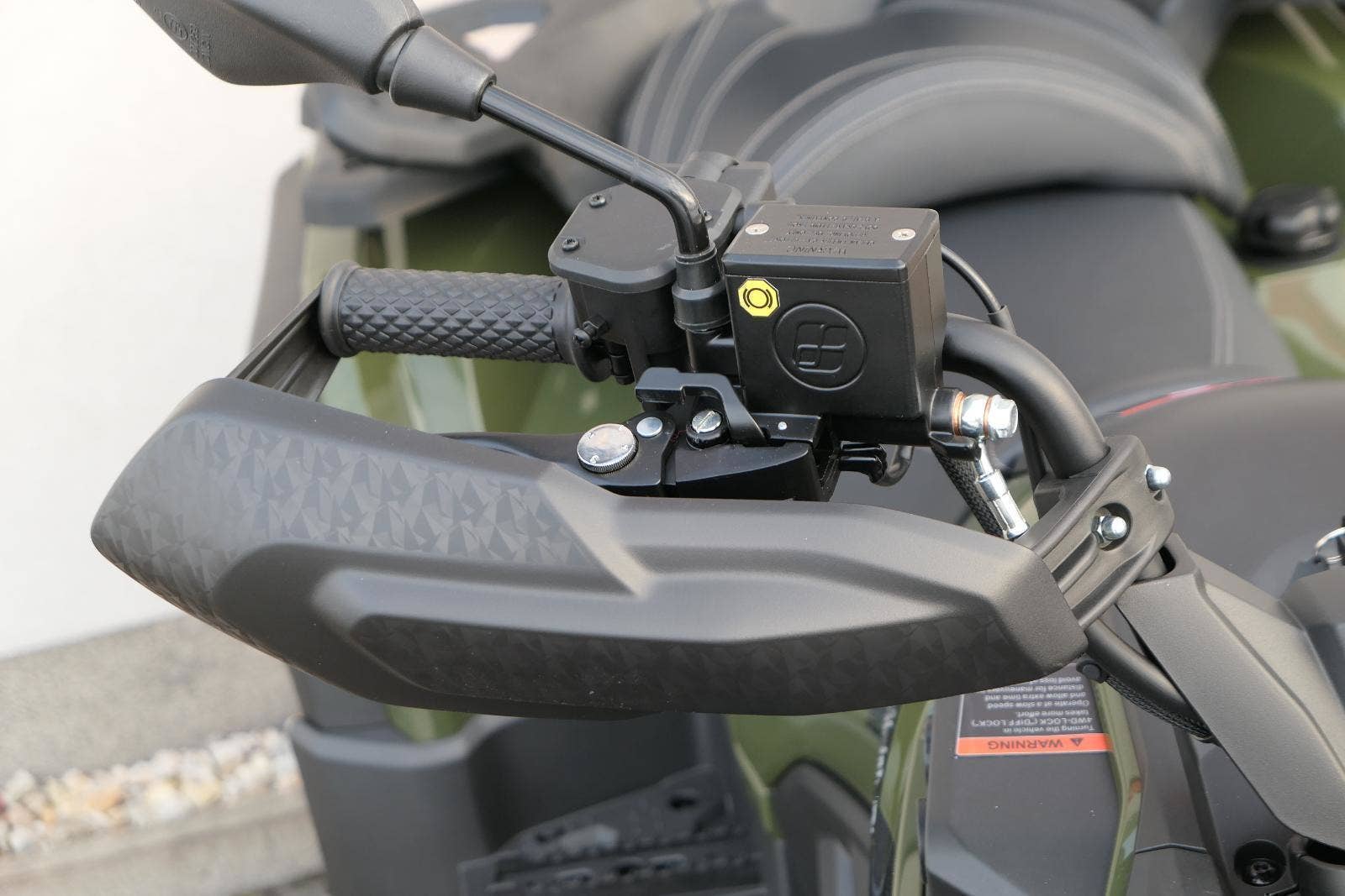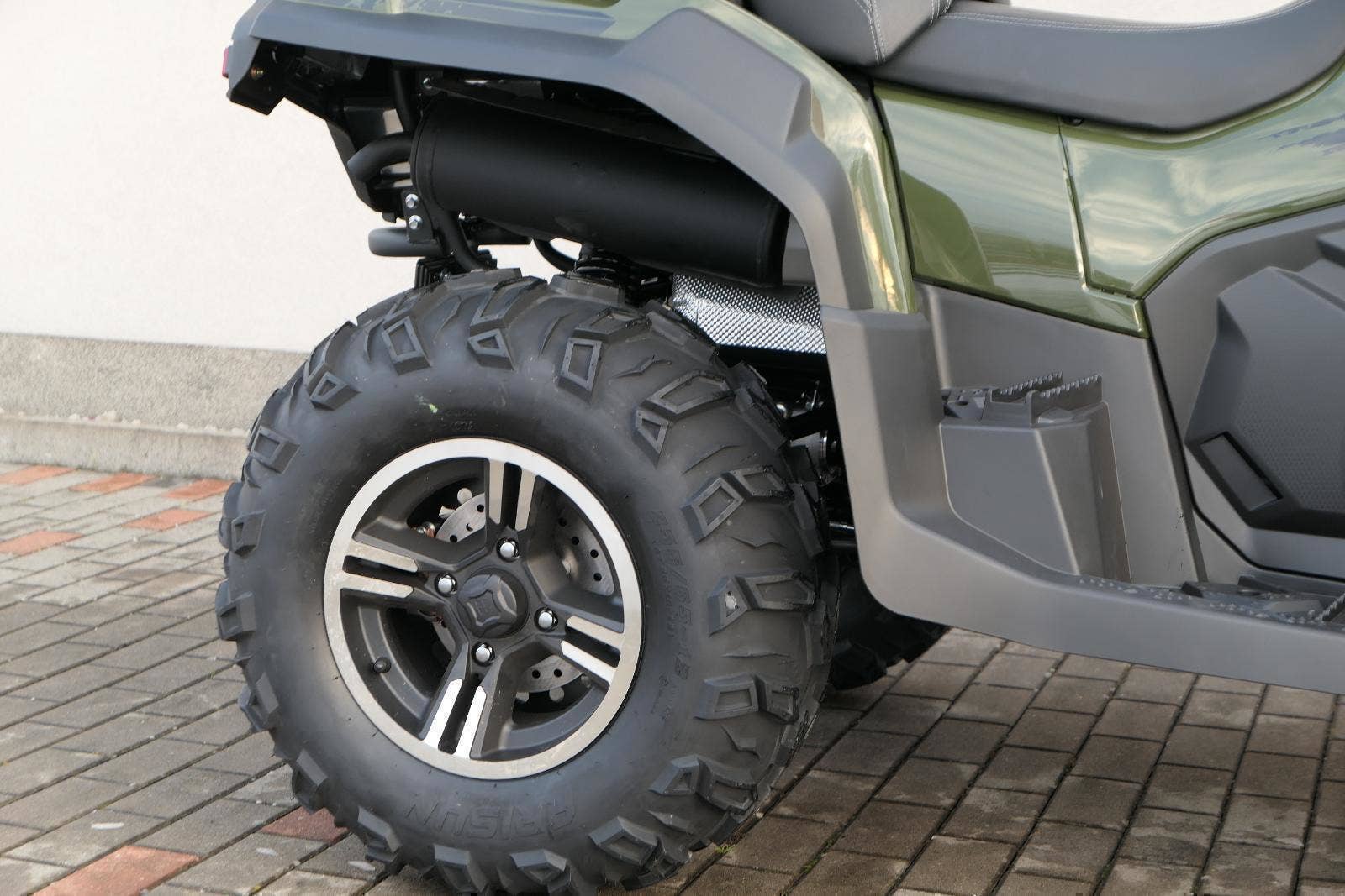 EPS (elektrický posilovač řízení), 12″ alu kola, 3x 12V zásuvka (zapalovač + 2x USB), zámek řízení integrovaný ve spínací skříňce, voděodolný kastlík v předním blatníku a v zadní části čtyřkolky, homologované tažné zařízení s el. zásuvkou na neskutečných 800 kg, silný elektrický naviják 3000 lbs, kryty rukou, ochranné lemy blatníků, přídavné sedadlo s opěradlem a madly pro spolujezdce (u prodloužené verze MAX), přepínání pohonu 2×4/4×4 + uzávěrka předního diferenciálu, přední ochranný rám s plastovým krytím, přední i zadní nosič s možností naložit na ně až 80 kg nákladu, full LED dynamické přední a zadní směrovky integrované do předních i zadních světel
