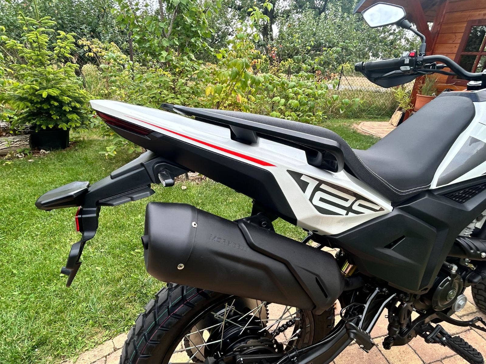 Jednoválcový, čtyřtaktní motor DOHC o objemu 124 cm3 a výkonem 10,5 kW. Nízká spotřeba a nenáročná údržba z něj činí ideální motor nejen pro začátečníky. V každém terénu se budete cítit bezpečně díky upside down vidlicím, kotoučovým brzdám s ABS i vypleteným kolům 19“ a 17“ vzadu. Full LED svícení v designu rallye Vás doslova nadchne. Z pohodlného dvoustupňového sedla je super výhled na přístrojovou desku LCD + USB s podsvícenými ovládacími prvky – technika se sebou na každém kroku.