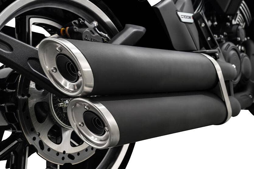 Horizontální dvojitý výfuk - nízko umístěné dvojité tlumiče výfuku dotvářejí charakteristický vzhled cruiseru C 1002V.