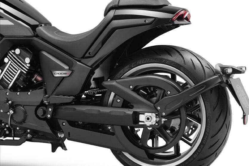 Stabilní, pohodová jízda - ultra široká zadní pneumatika Metzeler poskytuje vynikající jistotu na silnici. Pohodovou jízdu pak podtrhne sekundární pohon řemenem.
