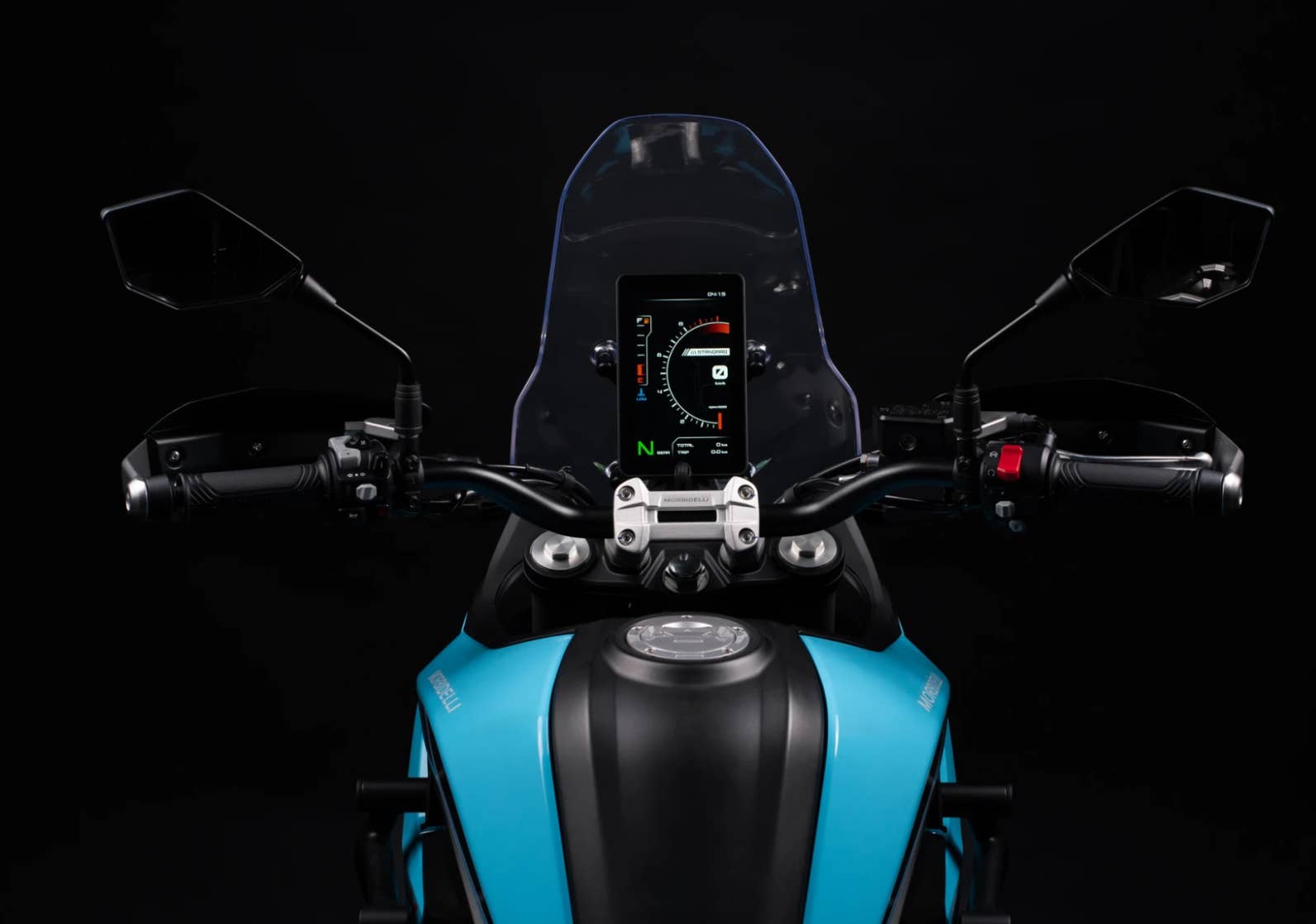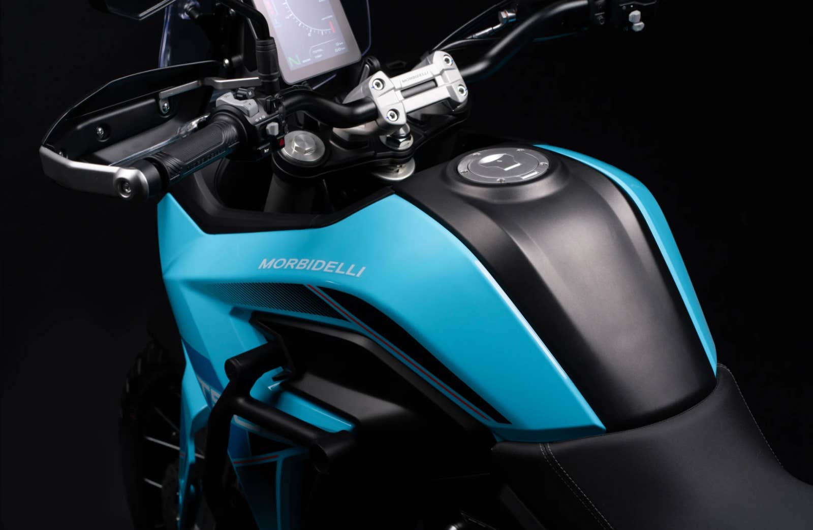 7" TFT displej a inteligentní připojení. Barevný displej s projekcí navigace pro chytrý telefon. Součástí je Bluetooth, USB-C, podsvícené spínače a roční bezplatný přístup ke službě Morbidelli Connect. Tlačítko SOS, vibrační/pohybová upozornění, sledování v reálném čase a dálkové vypnutí motoru – to vše dostupné prostřednictvím aplikace Morbidelli Connect.