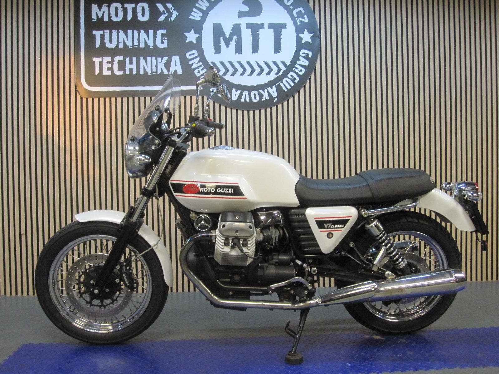 Motocykl koupen jako nový v ČR v roce 2008. Od té doby čtyři majitelé. Poslední od roku 2021. V TP zapsán výkon 35,5 kW, TK do roku 2029. Momentální stav tachometru 36.079 km. K motocyklu jsou dva klíče + kód a protokoly z STK. V nadstandardní výbavě je motocykl vybaven plexištítem. Moto Guzzi V7 je ikonický italský motocykl, známý pro svůj klasický retro styl, vzduchem chlazený vidlicový dvouválec a snadnou ovladatelnost.