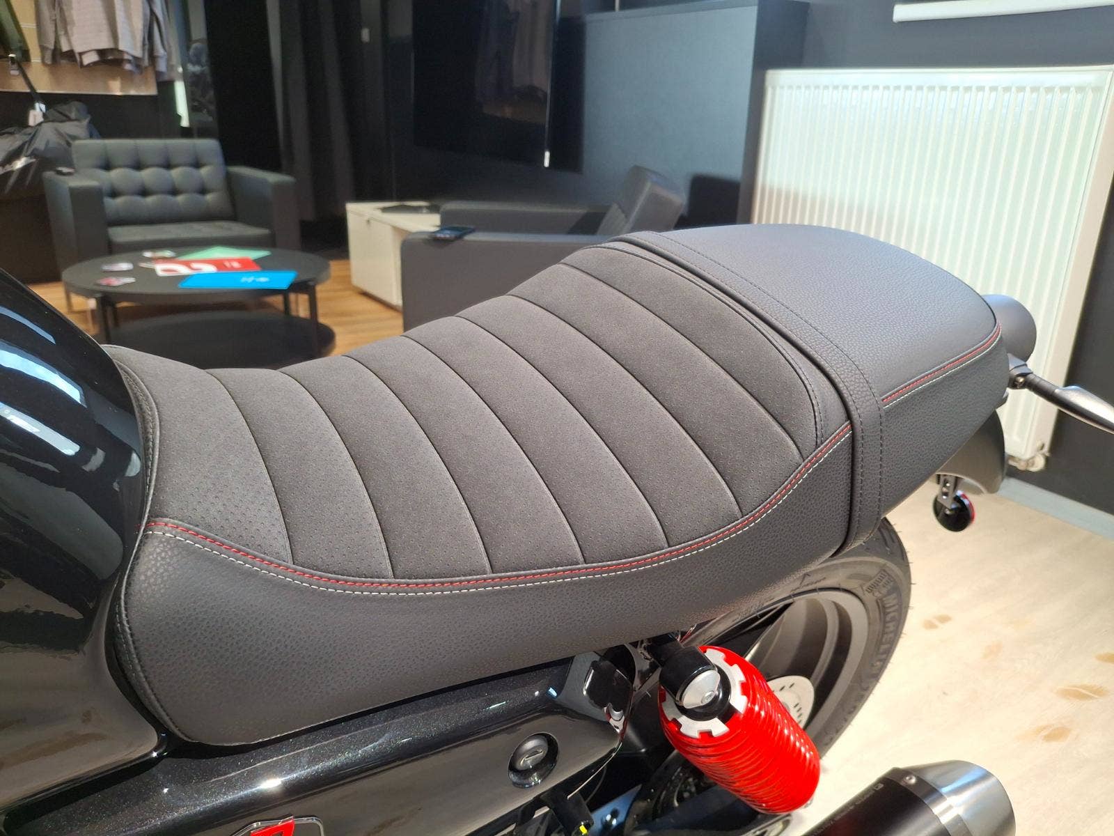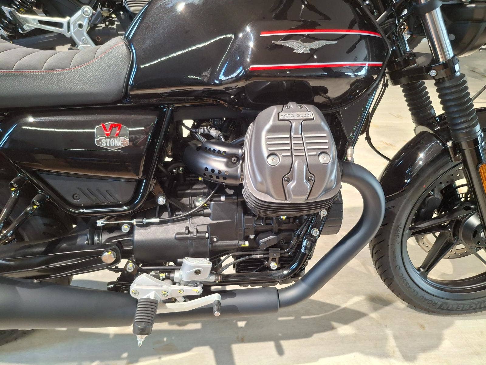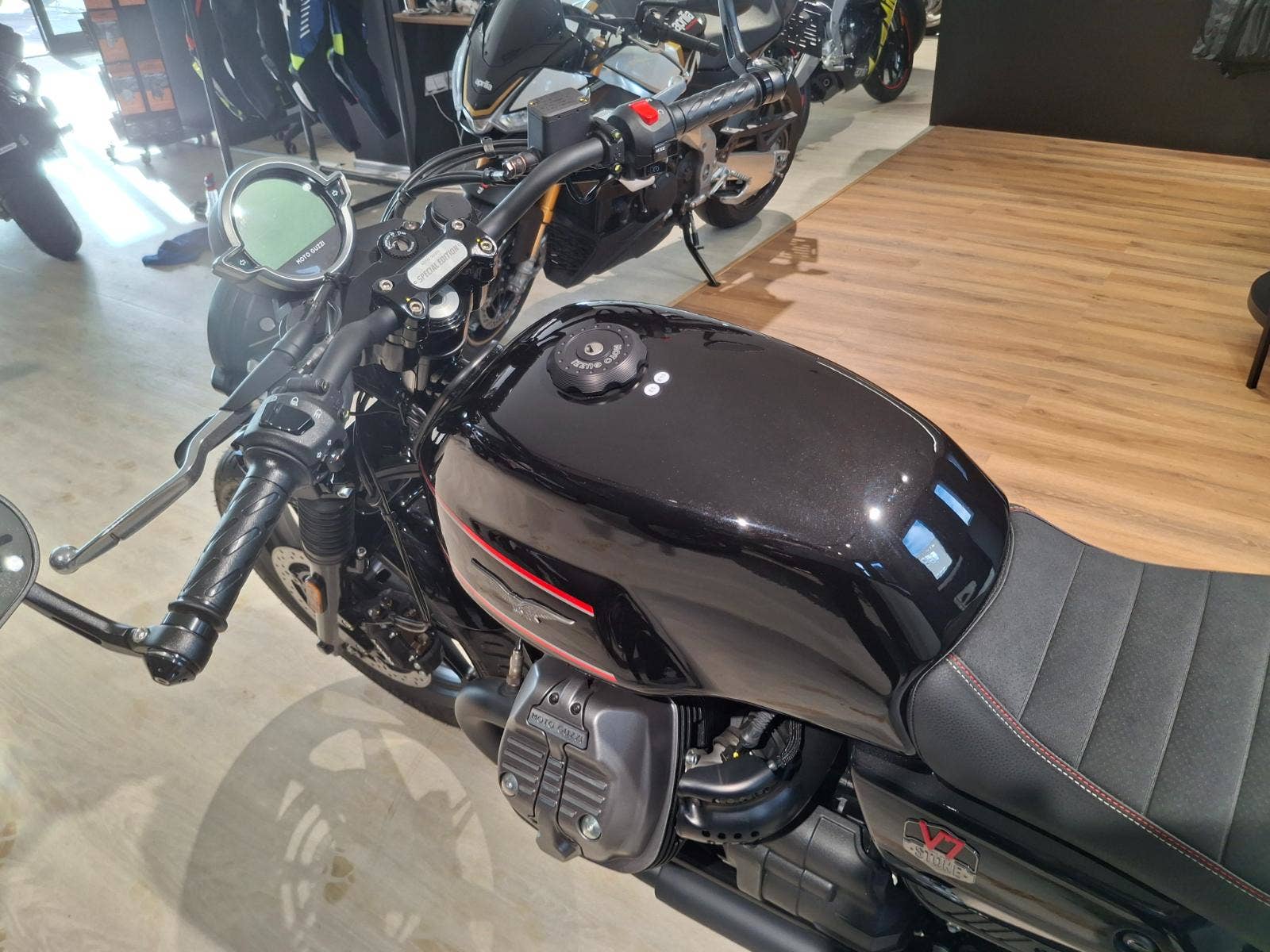Moto Guzzi V7 Special edition zaujme na první pohled svými dynamickými liniemi. Zrcátka umístěná na koncích řídítek a černé sedlo s viditelným prošíváním podtrhují jeho sportovní eleganci. Lehká šestipaprsková kola z lehké slitiny dodávají motocyklu osobitý vzhled, stejně jako hliníkové vložky na bocích a hliníkové držáky světlometů. Každý detail byl promyšlen do posledního milimetru - včetně držáku řídítek s laserem vyrytým logem. Výkon a ovládání v dokonalé harmonii - to je nová V7. Vzduchem chlazený, 90° příčný V-Twin s kardanovým pohonem od Moto Guzzi se neustále vyvíjí, ale jeho ikonická koncepce zůstává nedotčena. Splňuje normu Euro 5+ a je vybaven systémem Ride-by-Wire. Dvouválcový motor o objemu 853 cm3 nabízí výkon 66,5 k při 6 700 ot/min a točivý moment 79 Nm při 4 400 ot/min - přičemž 95% točivého momentu je k dispozici při 3 500 ot/min.
