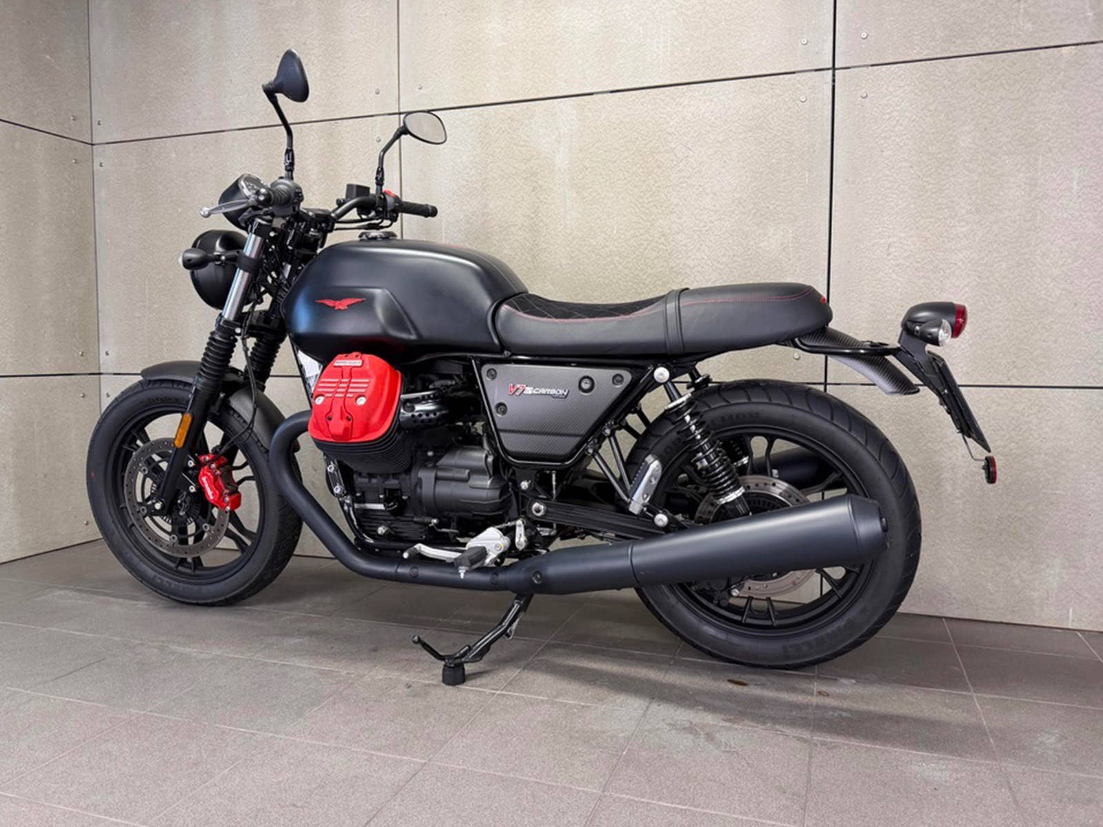Moto Guzzi V7 III Carbon ABS, r.v. 2020, limitovaná edice Carbon, koupená nová v ČR a po 1. majiteli, naprosto bez poškození a v perfektním stavu. Nájezd pouhých 5145 km. Všechny klíče, veškerá dokumentace, faktury za servis. Zeptejte se nás také na výhodné splátky, nově i s nulovou akontací! Schválení trvá 15 minut, a schválení můžeme vyřidit i po telefonu! K danému motocyklu dostanete voucher na 5000 Kč na další stoje z nabídky motopalace. cz a další slevový voucher do eshopu ACI (vybavení, oblečení, moto-kosmetika)! Rezervujte si svůj motocykl včas! Před návštěvou nás prosím kontaktujte, abychom Vám mohli být k dispozici, snažíme se vyhovět i mimo pracovní dobu (večery, víkendy i svátky). Těšíme se na Vás!