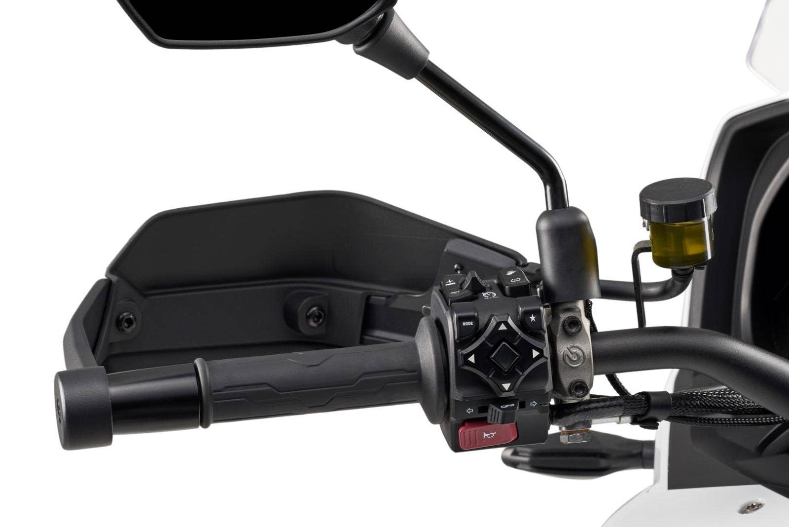 7“ TFT displej, obousměrné rychlořazení, centrální stojan, třístupňové vyhřívání rukojetí chráněných velkoplošnými blástry, vyhřívaná sedla řidiče i spolujezdce, jednou rukou nastavitelné plexi, tempomat, senzory tlaku v pneumatikách nebo zadní radar varující světýlky v zrcátkách před vozidlem v mrtvém úhlu. A to není vše, displej umí i integrovanou navigaci prostřednictvím appky pro iOS i Android, jsou tady také dva USB porty (A a C), přisvěcování do zatáček nebo přední kamera nahrávající nepřetržitě až 15 hodin záznamu.