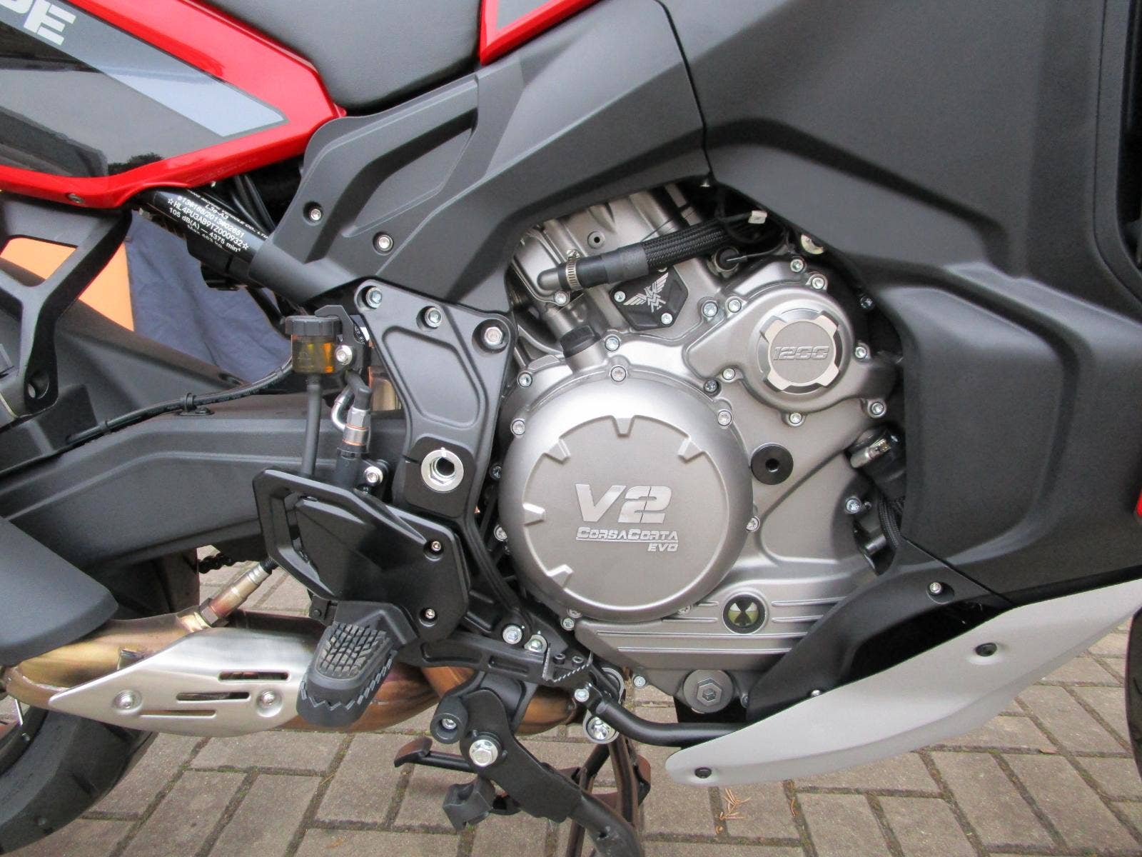 Typ motoru: V2 87° Čtyřtakt - dvouválec do V Systém chlazení: Kapalinou Objem: 1187 ccm Vrtání x zdvih: 107mm x 66mm Kompresní poměr: 12,3: 1 Ventilový rozvod: DOHC, 8 ventil Palivový systém: Vstřikování Převodovka: 6-ti stupňová Pohon: Řetězem Výkon: 95 kW (129 koní) / 8750rpm (Max 220km/h) Točivý moment: 106Nm /129hp/ 8750rpm