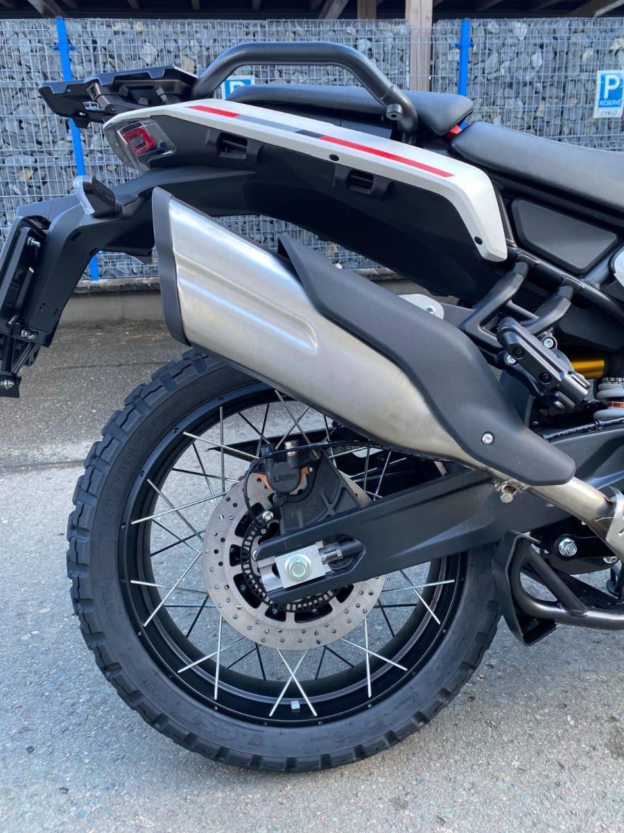 Vyspělý brzdový systém vybavený systémem ABS (který lze v terénním režimu vzadu deaktivovat) a radiálním brzdovým třmenem vpředu nabízí přesné, výkonné a nastavitelné brzdění za všech jízdních podmínek. Středový stojan, dvojité sedadlo, zadní sedadlo s proměnlivým úhlem, intuitivní navigační systém, nastavitelné čelní sklo pro optimální ochranu a porty USB a USB-C doplňují tento motocykl navržený pro vytváření jedinečných zážitků.