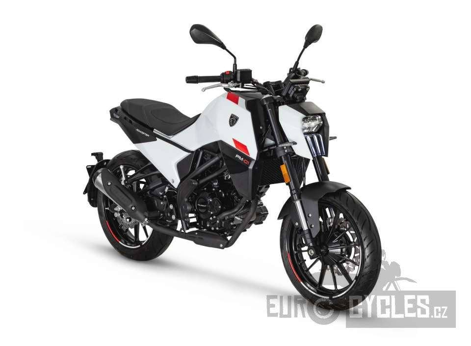 Díky důrazu na městské použití má Peugeot PM-O1 dynamické ovládání a je ideální pro každodenní použití. Agilní a dynamický, díky kompaktní velikosti a nízké váze 152 kilo (včetně plné 12,5 litrové nádrže). Tlumení má na starosti 41mm. obrácená přední vidlice a centrálně umístěný zadní tlumič přichycený na kyvnou vidlici, s nastavitelným přepětím pro optimální nastavení při jízdě s nebo bez spolujezdce. Brzdný účinek obstarává duální ABS systém v kombinaci s předním 280 mm kotoučem a 240mm zadním. PM-01 125 je vybaven 17″“ palcovými drátovými koly obutých do 110/70-17 přední pneumatiky a 150/60-17 zadní pneumatiky. Na subtilní kapotáži PM-01 nenajdete žádné nadbytečné elementy, motor i trubkovitý rám jsou odhalené a dotváří sportovní dojem.