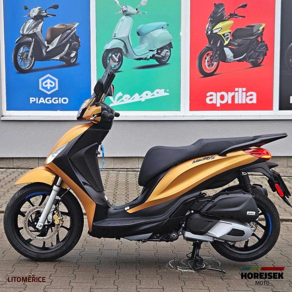 Piaggio Medley kombinuje obratnost a snadnou ovladatelnost skútru s velkými koly s elegantním designem, ochranou a úložným prostorem skútrů třídy GT. Tento skútr je stylový a inovativní, lehký a přitom mimořádně stabilní, obratný v hustém provozu a pohodlný i na delších cestách. Piaggio Medley kombinuje to nejlepší z mnoha světů a díky modernímu designu a technologiím dělá každou jízdu chytřejší. K dispozici je také verze Piaggio Medley S, která odhaluje svůj sportovní charakter a zvládne každou cestu s dokonalou kombinací stylu a dynamiky.