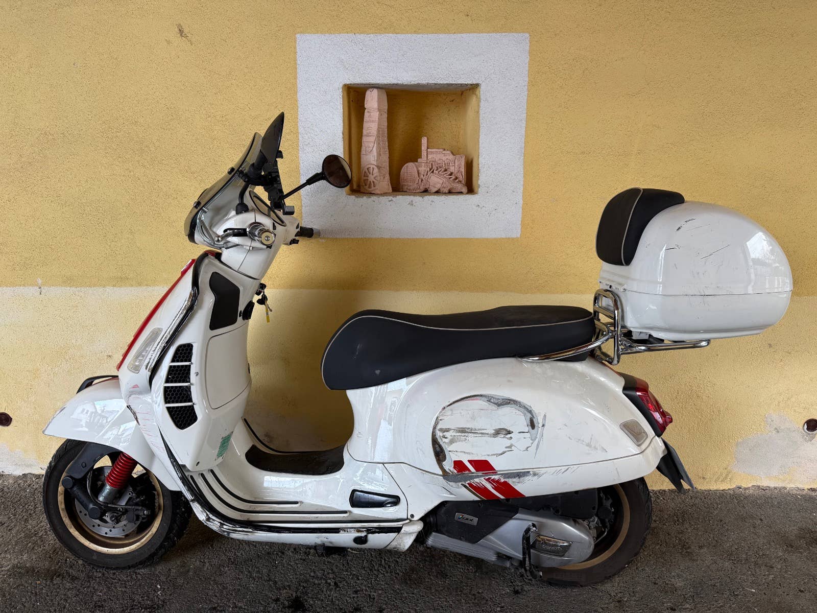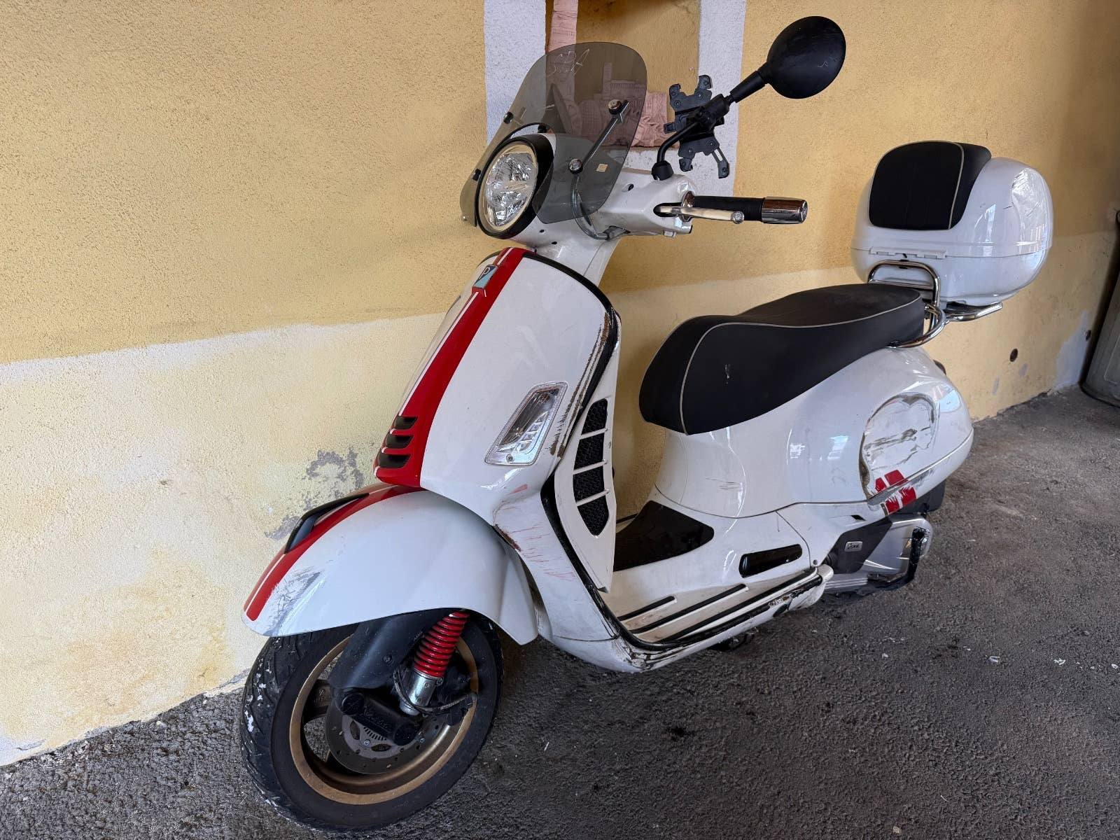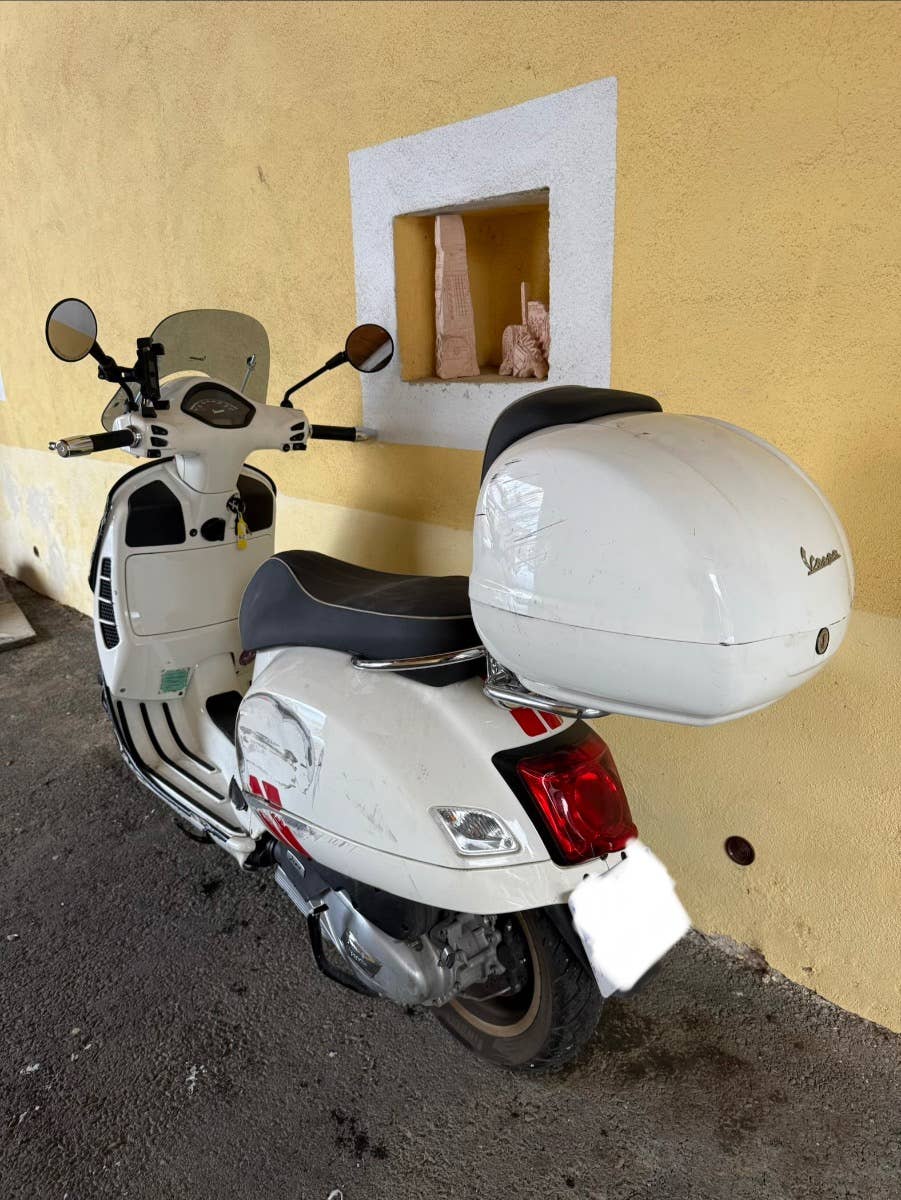 Havarovaná Piaggio Vespa GTS 125 racing sixties 2021, motor i-get, najeto cca 14 tis. km, poškození viz foto, pojízdná! Lze řídit s oprávněním B.