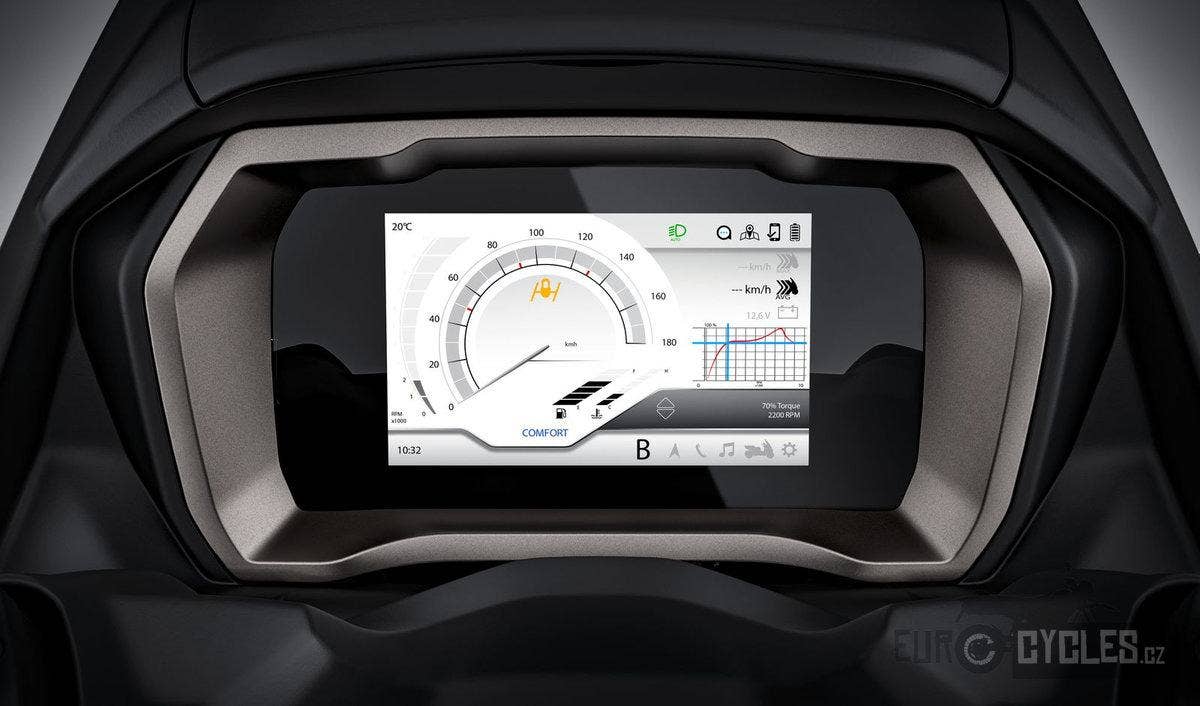 Futuristický systém ARAS (Advanced Rider Assistance System), převzatý z automobilového světa, pomáhá při řízení a zvyšuje bezpečnost zobrazením řady funkcí, včetně potenciálně nebezpečných situací. K tomu všemu se přidává mimořádně praktický systém bezklíčového odemykání a startování, který umožňuje nastartovat vůz nebo otevřít úložné prostory bez nutnosti vložení klíče.