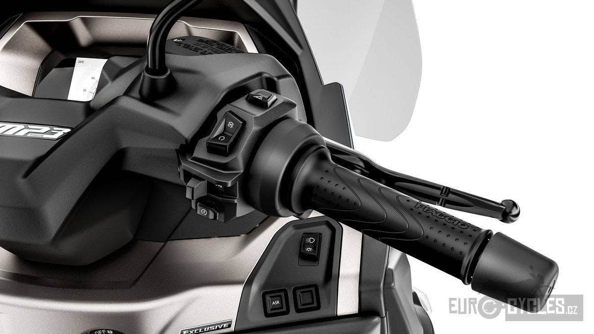 Pýchou a chloubou modelu Piaggio MP3 530 Exclusive je jeho působivá technologická výbava. Skrývá funkce, jako je 7" TFT displej s konektivitou Piaggio MIA, tempomat a couvání se zadní kamerou pro snadnější parkování.