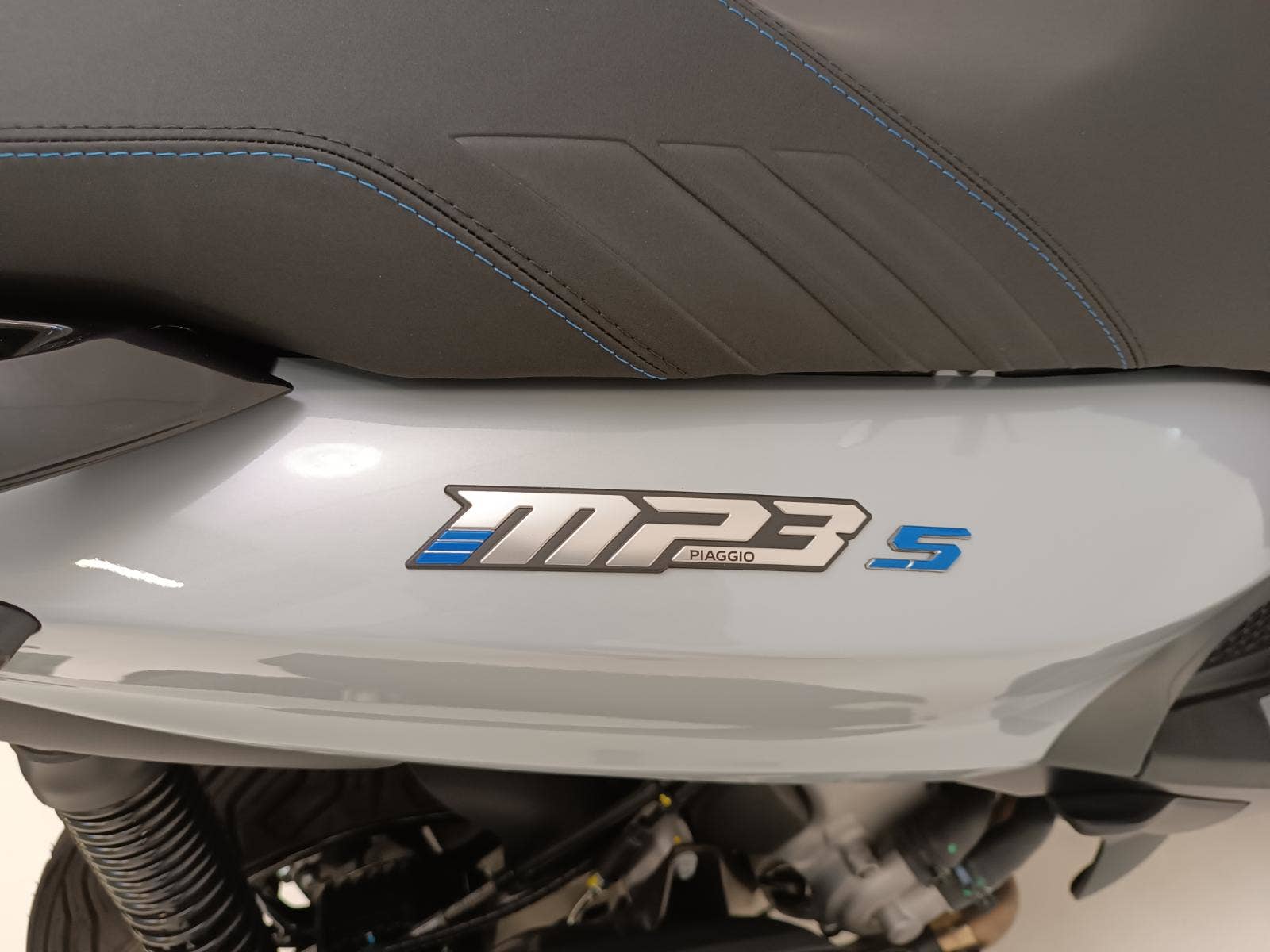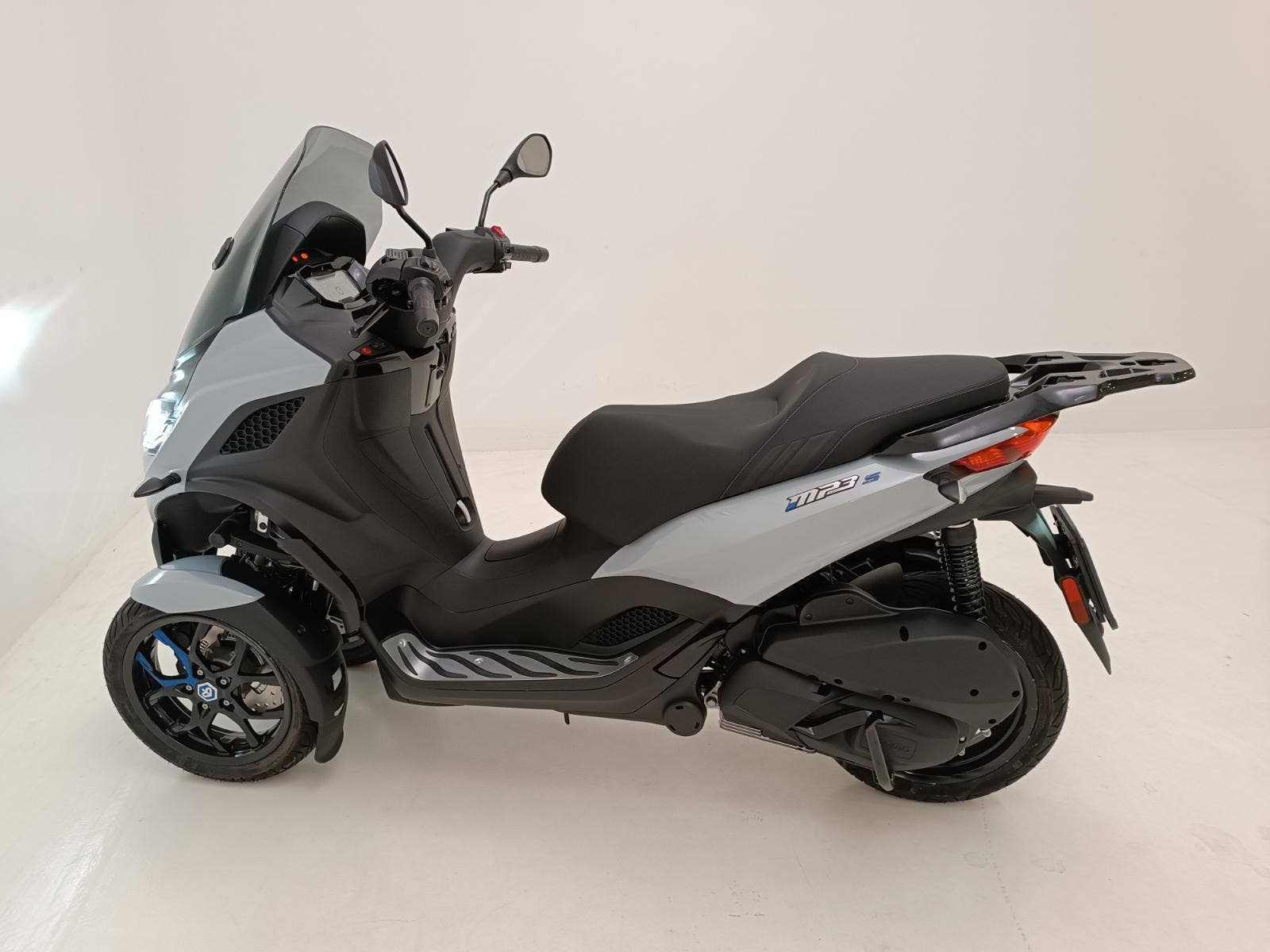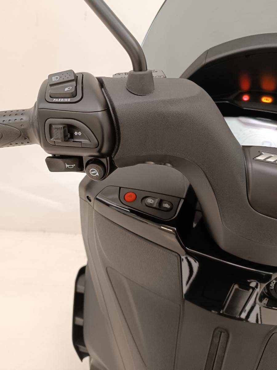 Piaggio MP3 310 Sport s moderní přední částí a barevnou paletou, která podtrhuje jeho elegantní design inspirovaný automobily, upoutá pozornost všude, kde se objeví. Sportovní vzhled dotvářejí detaily, jako je modré prošívání na sedle a nálepky na černých ráfcích předních kol. Ke sportovnímu stylu přispívá také kombinace matných a lesklých černých povrchů a prostor pro nohy s hliníkovou vložkou. Tato dokonalá kombinace elegance a agresivity, na které lze jezdit i s řidičským průkazem skupiny B, je určena pro jezdce, kteří hledají styl a výkon ve skútru, který je již nyní světovým unikátem.