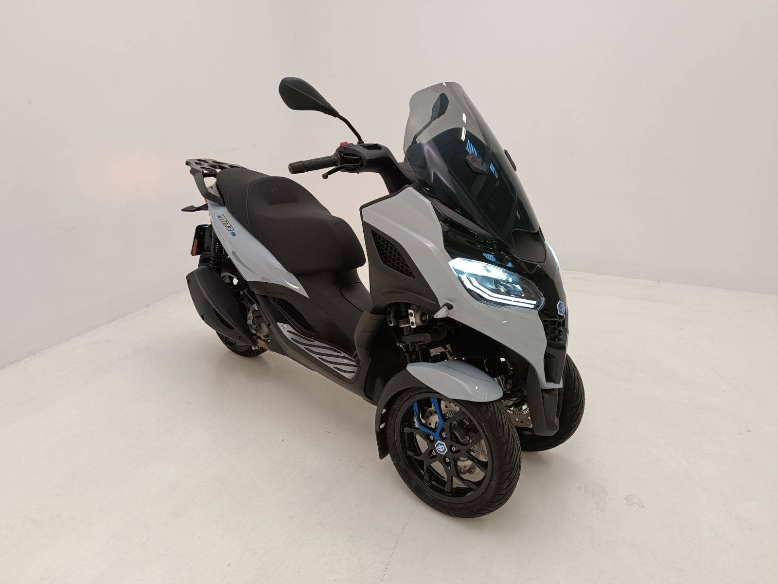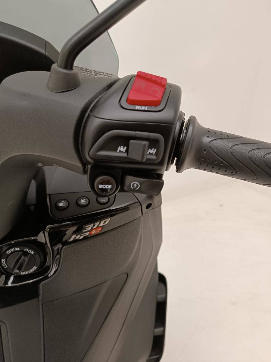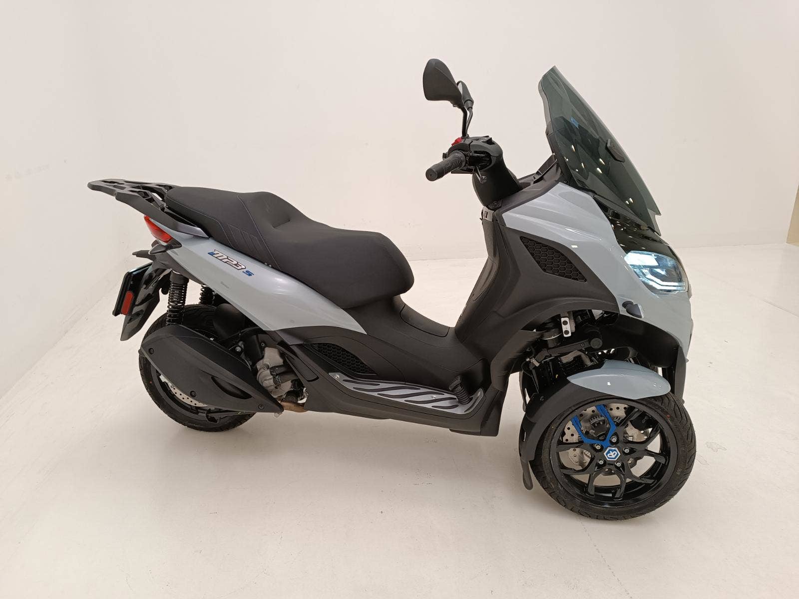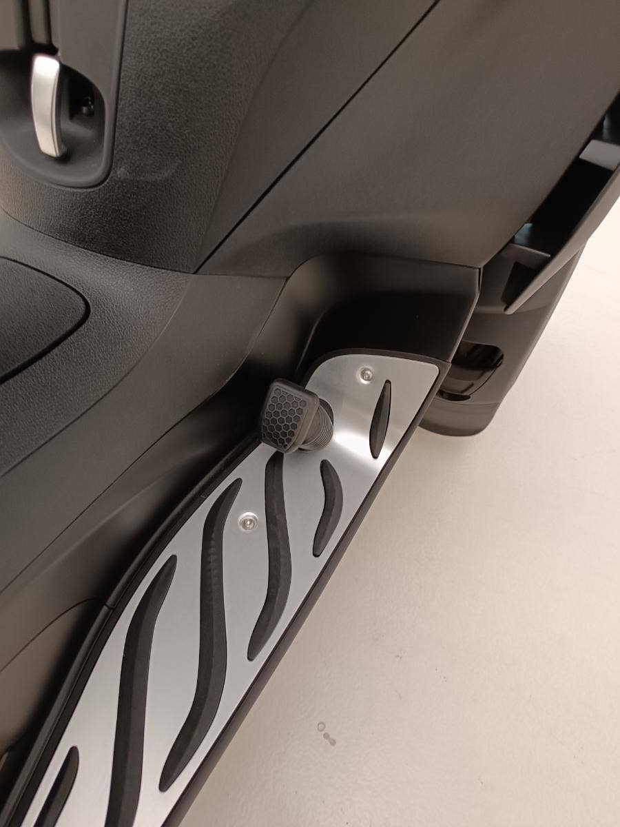 Piaggio MP3 310 Sport s moderní přední částí a barevnou paletou, která podtrhuje jeho elegantní design inspirovaný automobily, upoutá pozornost všude, kde se objeví. Sportovní vzhled dotvářejí detaily, jako je modré prošívání na sedle a nálepky na černých ráfcích předních kol. Ke sportovnímu stylu přispívá také kombinace matných a lesklých černých povrchů a prostor pro nohy s hliníkovou vložkou. Tato dokonalá kombinace elegance a agresivity, na které lze jezdit i s řidičským průkazem skupiny B, je určena pro jezdce, kteří hledají styl a výkon ve skútru, který je již nyní světovým unikátem.