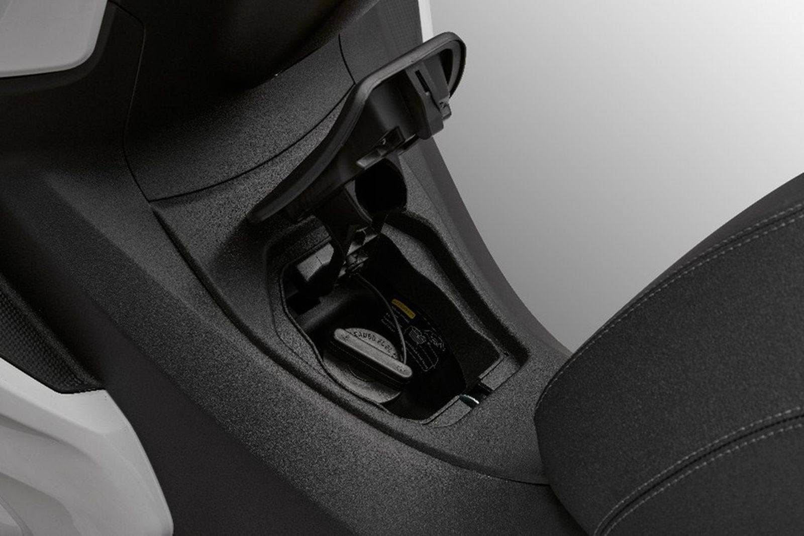 V levé příruční schránce pod řídítky je integrována zdvojená zásuvka USB-A a USB-C. Můžete skrz ně nabíjet například mobilní telefon, nebo si též zapojit externí navigaci. USB zásuvky mají samozřejmě voděodolnou gumovou krytku.