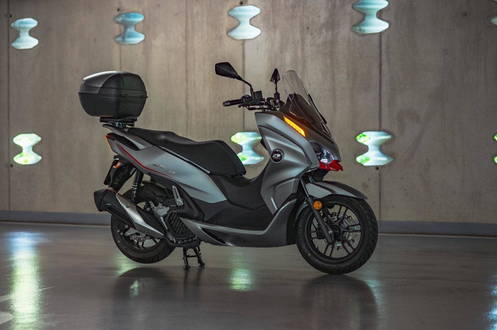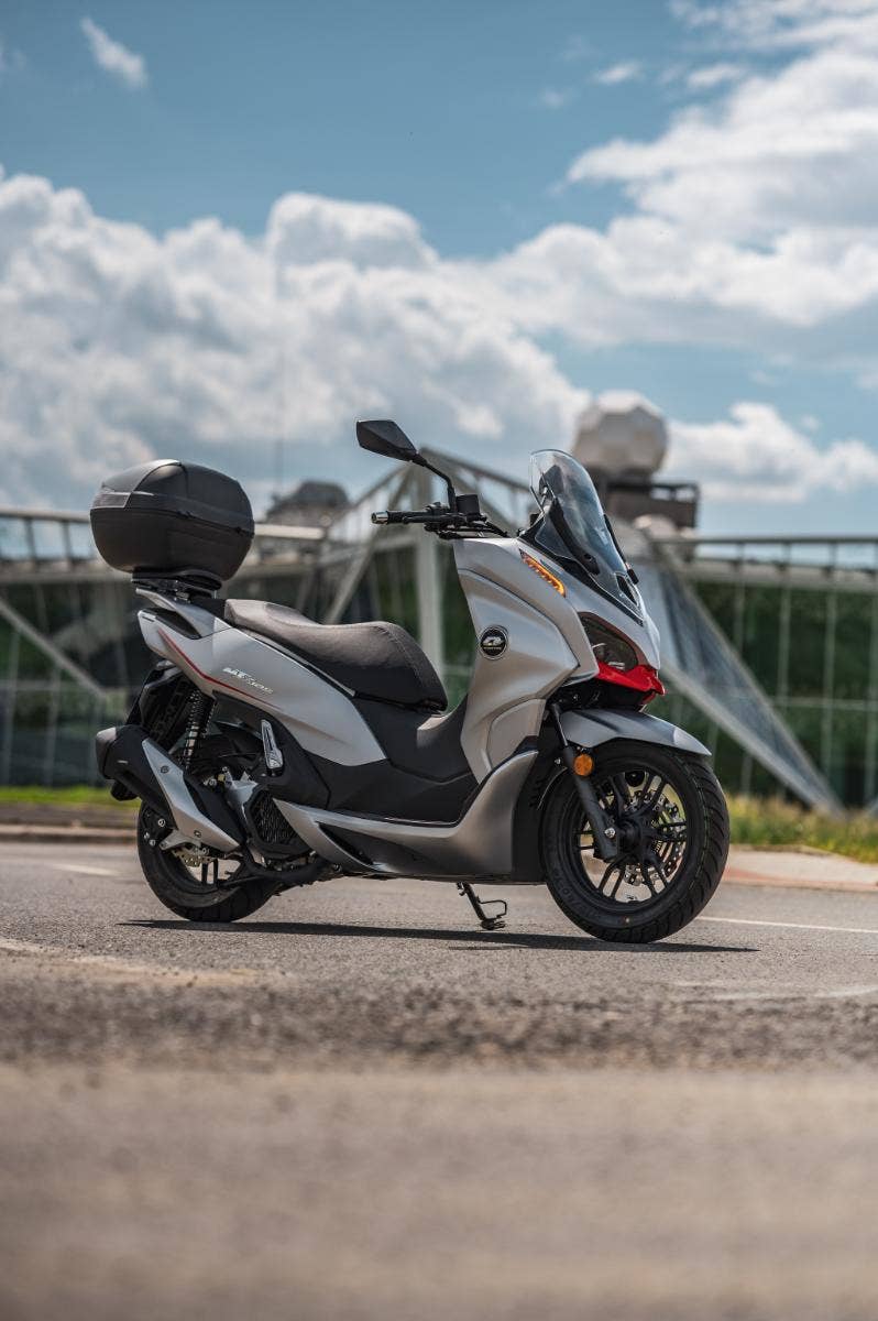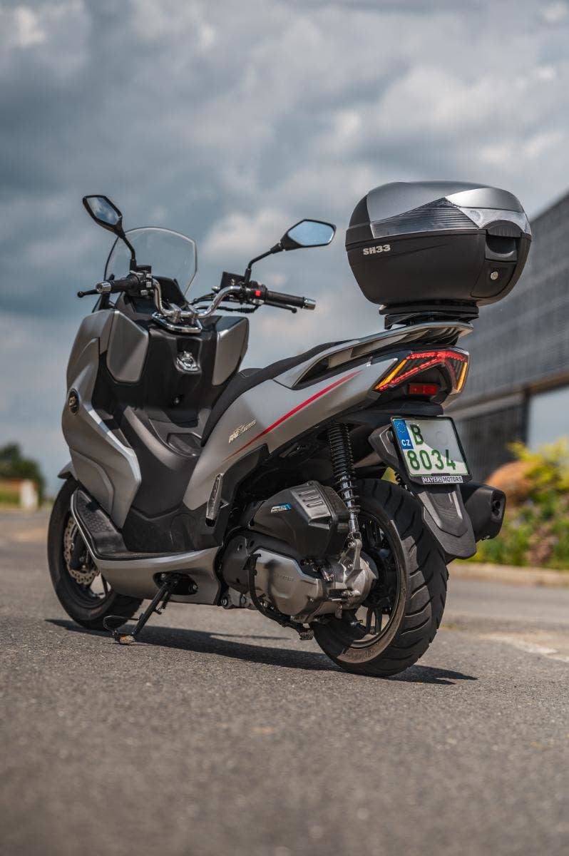 Novinka 2025 - hybridní skútr MTX 125 je doslova prošpikovaný moderními a pokročilými technologiemi. Ne každý skútr osloví širokou veřejnost jako naše novinka MTX 125 a dost možná dostane i Vás, protože již v základu má opravdu hodně co nabídnout: Pohonná jednotka se skládá z klasického spalovacího motoru a elektromotoru (startér - generátor) který pomáhá dosáhnout opravdu parádní zrychlení. Díky této technologii umí MTX 125 jezdit se spotřebou okolo 2,3 litru/100 km (dle normy WMTC3). Dále má již v základu start/stop systém, vypínatelnou kontrolu trakce, dvoukanálové ABS, bez klíčové zapalování, barevný TFT panel s konektivitou, zrcadlením a navigací. Monitorování tlaku a teploty v pneumatikách je i u tohoto skútru standardem. Přidejte barevně sladěný horní kufr, dvě USB zásuvky, LED osvětlení, modře podsvícené ovladače v základní výbavě a máte tu opravdu královsky vybavený stroj za příznivou cenu - pouze 74.900, Kč.