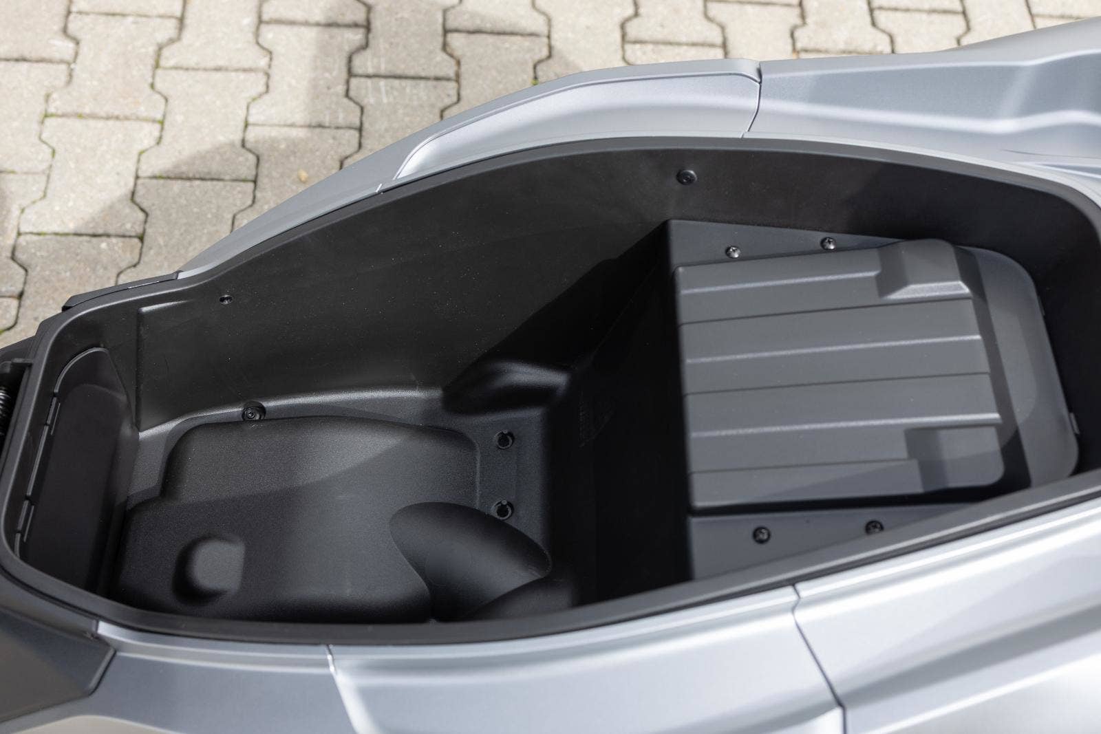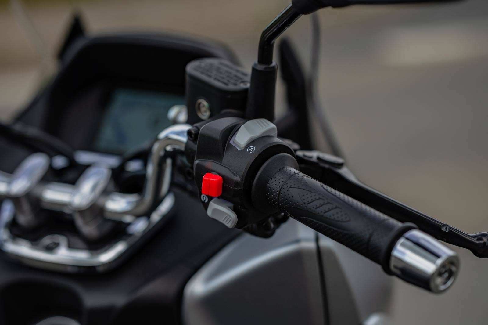 V levé příruční schránce pod řídítky je integrována zdvojená zásuvka USB-A a USB-C. Můžete skrz ně nabíjet například mobilní telefon, nebo si též zapojit externí navigaci. USB zásuvky mají samozřejmě voděodolnou gumovou krytku.