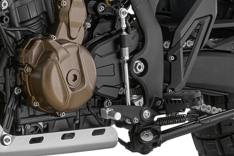 Kvalitní, velmi odolný padací rám umístěný okolo motoru je namontován na zesílených závěsných bodech na hlavním rámu motocyklu a chrání tak motor a části kapotáže v případě nechtěného pádu motocyklu na bok.