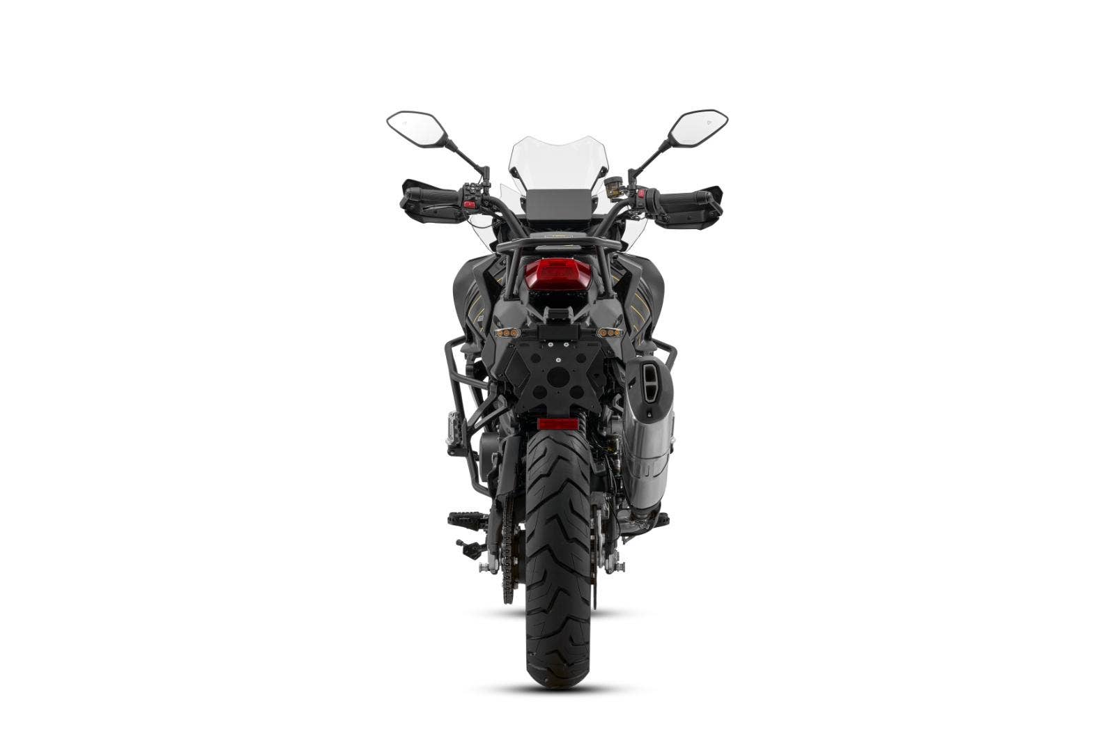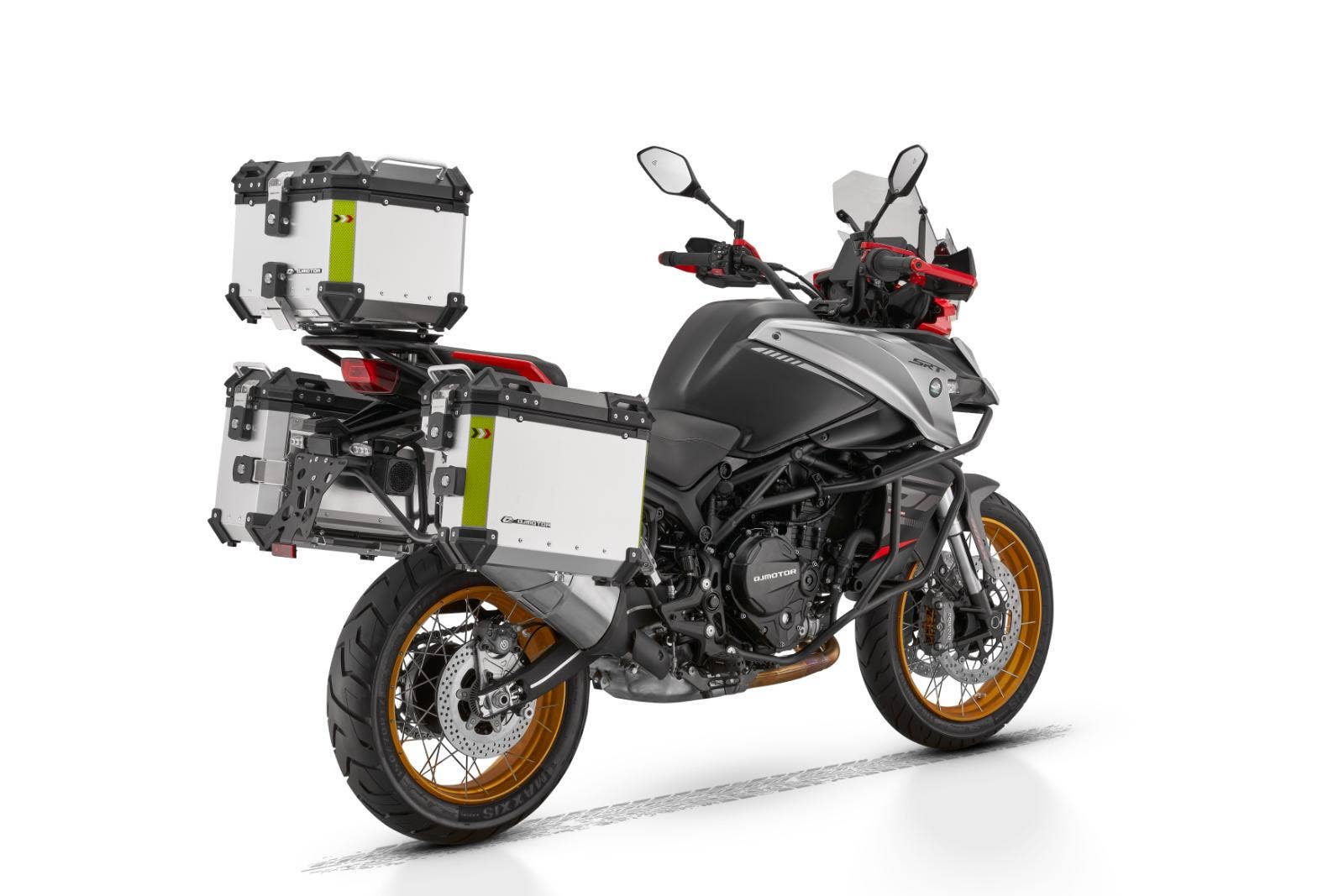 SRT 900 SX - Nová vlajková loď QJMOTOR Nový SRT 900 SX je tím nejlepším příkladem, jak má nová vlajková loď vypadat a co má umět, protože tento dlouho očekávaný model obdržel všechno, po čem naši zákazníci tak volali. Prodloužená záruka na 3 roky Motor SRT 900 SX - větší objem (904 ccm), větší výkon (95 HP) a hutný kroutící moment (90 Nm), Systém řízení kontroly trakce. Oboustranný Quickshfter. Sériově montovaná kamera v přední masce. Elektronický tempomat. Nádrž o objemu 24 litrů s krásným lakováním. Barevný 7″ TFT panel se senzory tlaku a teploty v pneu a USB portem. Konektivita s chytrými telefony. Prémiový brzdový systém od firmy BREMBO. Kvalitní podvozek MARZOCCHI. Vyhřívané sedadlo a rukojeti. Hliníkové kufry s postrováním a kapsami. Moderní LED osvětlení. Robustní nosič zavazadel (plotna) ve standardu. Vyhřívané rukojeti se zesílenými blástry. Odolný padací rám ve standardní výbavě. Hlavní stojan, USB zásuvka.