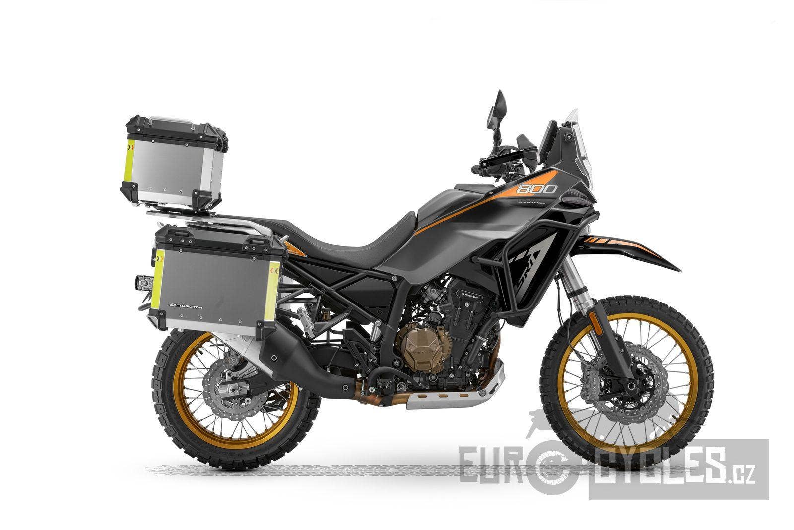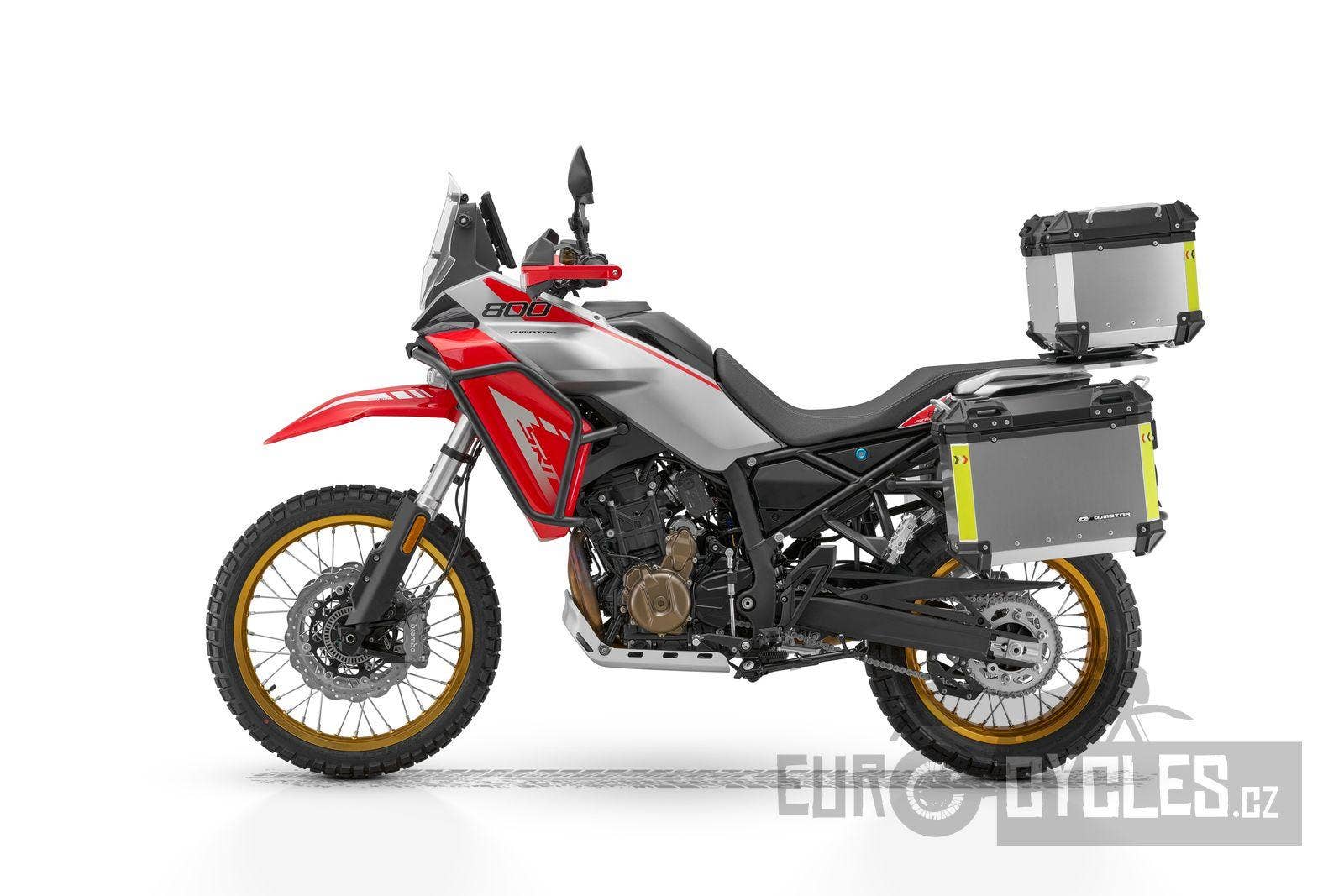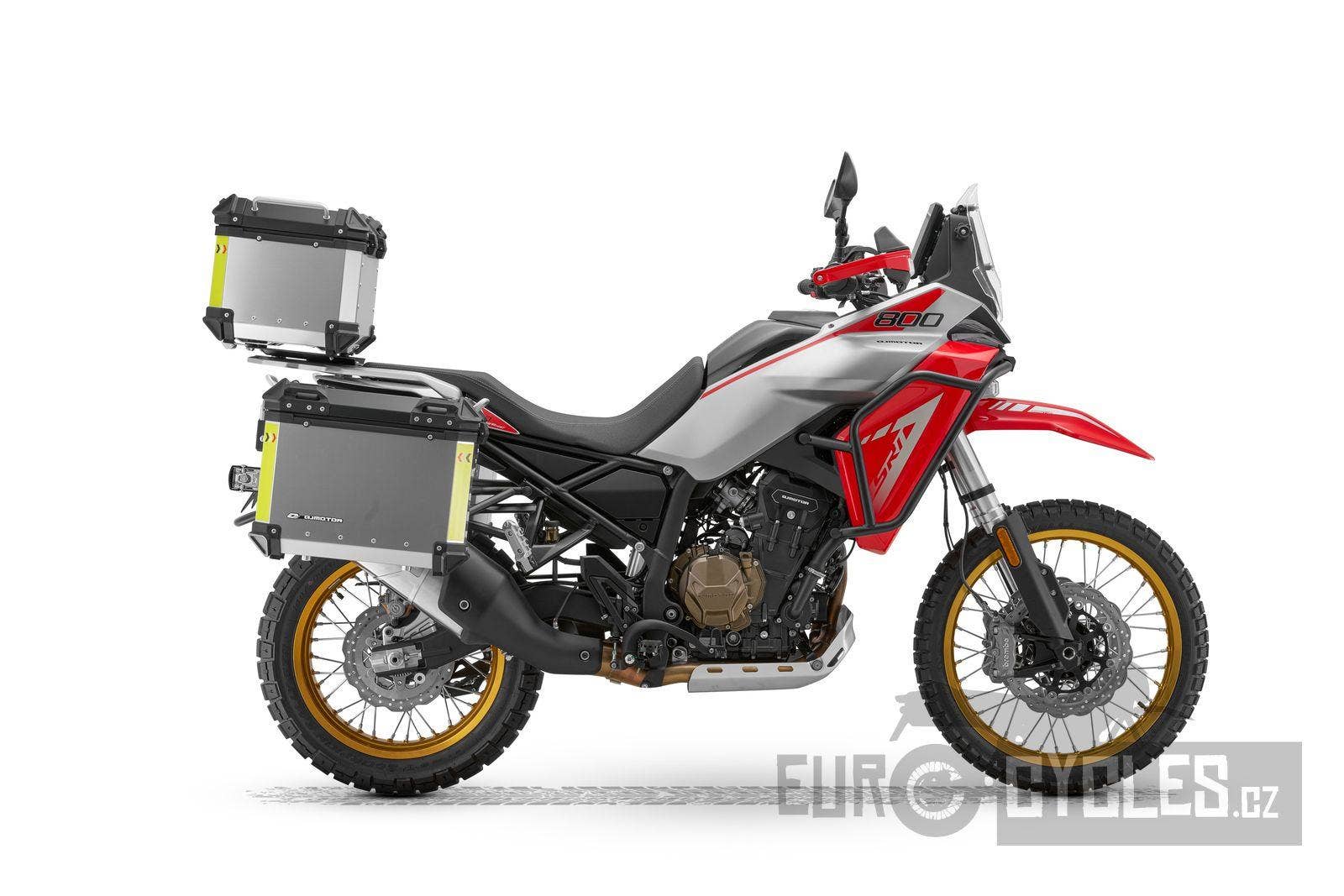K SRT 800 RX dostanete zdarma též kvalitní originální sadu uzamykatelných hliníkových kufrů QJMOTOR. Horní kufr a boční kufry lze sejmout v několika jednoduchých krocích a nabízí velký úložný prostor pro každé dobrodružství. Horní kufr s úložným prostorem 45 litrů a dva boční kufry o objemu 37 a 30 litrů nabízejí dostatek místa pro Vaše cestovní vybavení. Kufry jsou uvnitř polstrované a mají praktické vniřní kapsy. Cena celé sady 3 kusů kufrů je 24 990 Kč! Při koupi nového motocyklu získáte tyty originální kufry zcela zdarma!