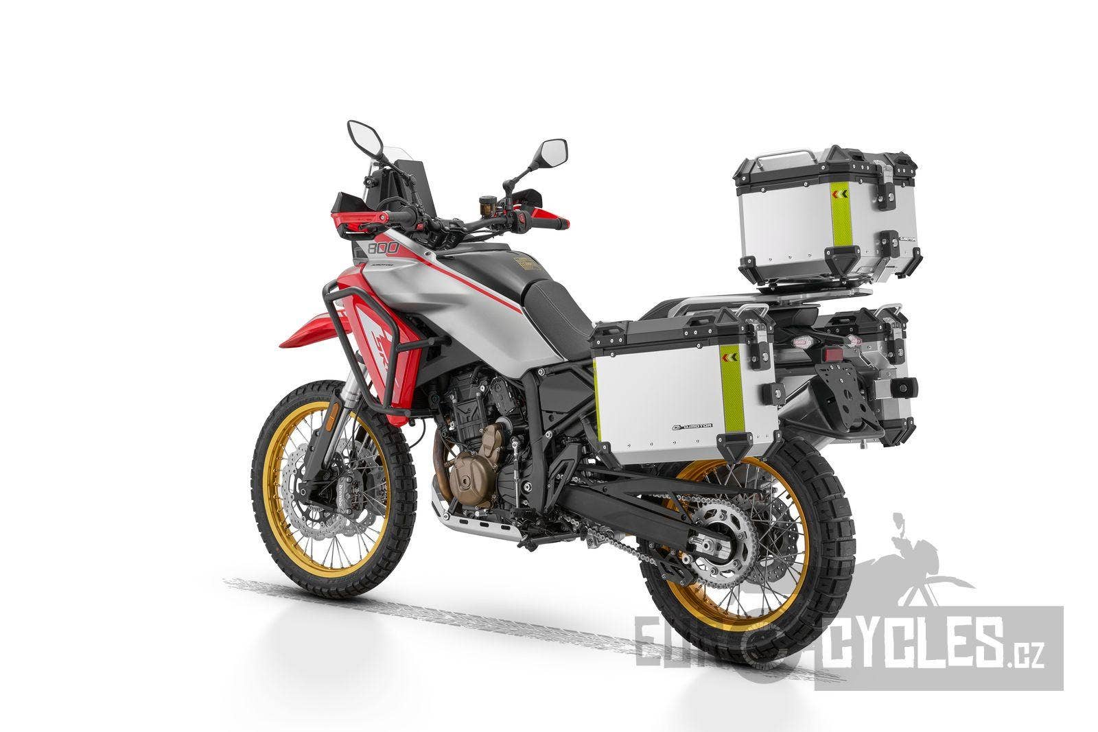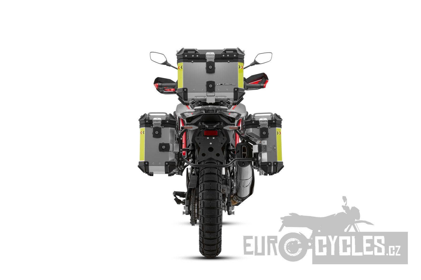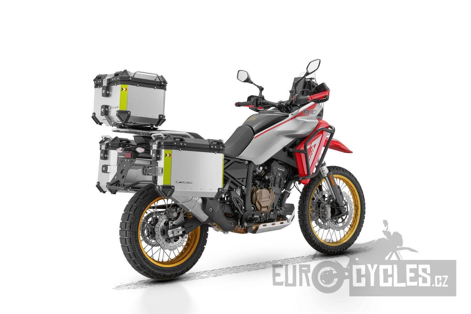 K SRT 800 RX dostanete zdarma též kvalitní originální sadu uzamykatelných hliníkových kufrů QJMOTOR. Horní kufr a boční kufry lze sejmout v několika jednoduchých krocích a nabízí velký úložný prostor pro každé dobrodružství. Horní kufr s úložným prostorem 45 litrů a dva boční kufry o objemu 37 a 30 litrů nabízejí dostatek místa pro Vaše cestovní vybavení. Kufry jsou uvnitř polstrované a mají praktické vniřní kapsy. Cena celé sady 3 kusů kufrů je 24 990 Kč! Při koupi nového motocyklu získáte tyty originální kufry zcela zdarma!