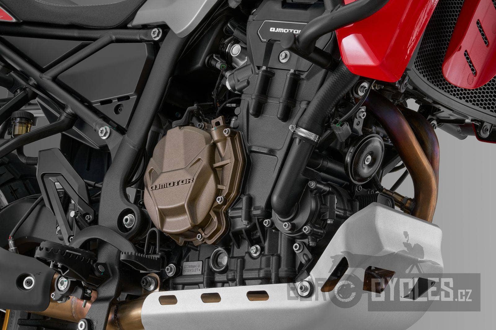 Srdcem SRT 800 RX je dvouválcový, řadový motor o objemu 799 ccm s 8mi ventilovou technikou a rozvody DOHC. Kliková hřídel s nejdelším zdvihem v kategorii (65,7 mm) dodává motoru obzvláště dynamické vlastnosti, přičemž jeho výkon dosahuje velmi slušných 92,5 koně při 8.500 otáčkách a 87 Nm točivého momentu při 6.750 otáčkách. Samozřejmostí je u každého motocyklu QJMOTOR i parádní zvuk linoucí se z jeho výfuku. Precizním naladěním vstřikování paliva se dosáhlo vynikající spotřeby paliva.